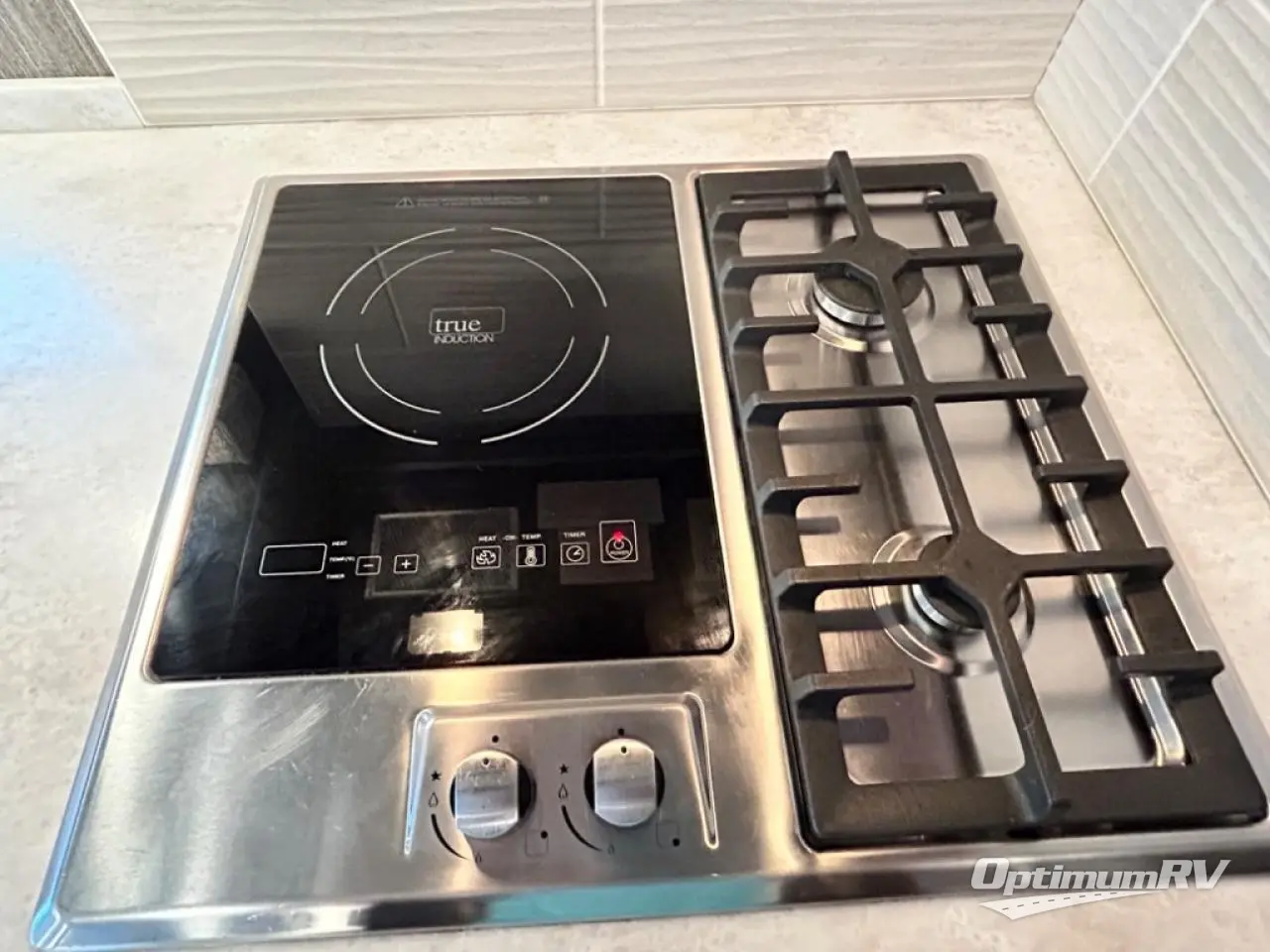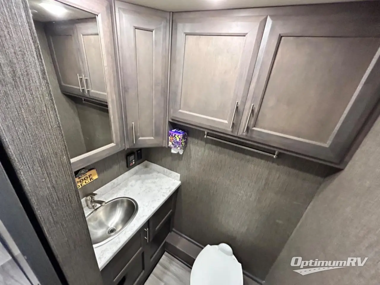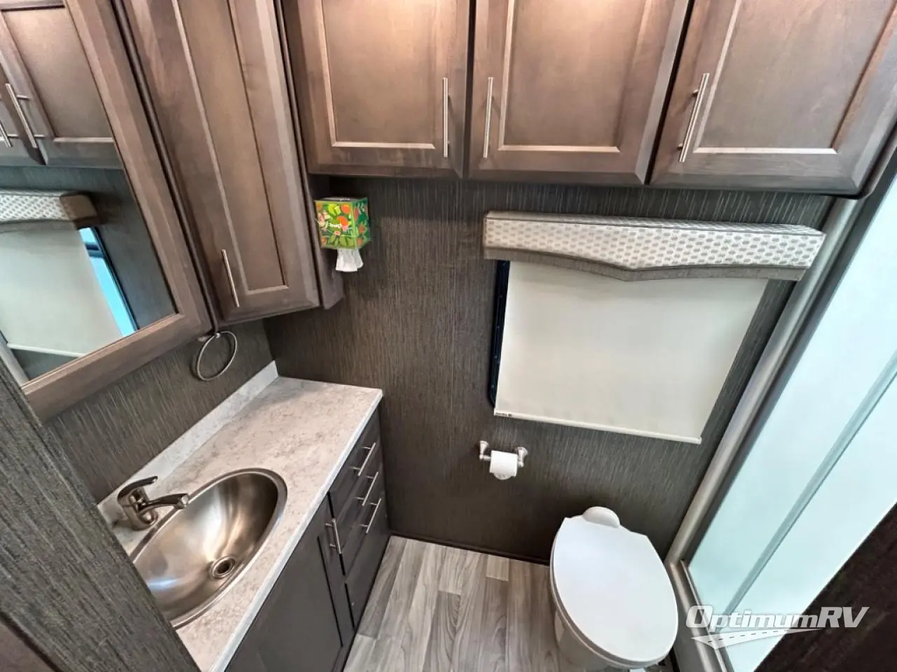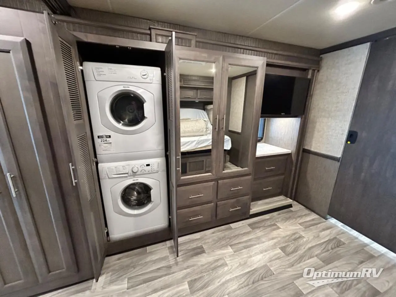 Your whole gang will love traveling in this Challenger Class A gas motorhome because of the full and half bath! You will enjoy plenty of walking around space thanks to the full-wall slide, the bedroom slide, and the large living room slide that contains the 78" Dream Dinette and 68" sofa bed. The private master suite features an RV king Tilt-A-View inclining bed, a 32" LED TV, two wardrobes, a stacked washer/dryer, and a full bathroom. Plenty of entertainment is found inside with two LED TVs and outside with the exterior 39" LED TV. The 20' power awning with integrated LED lighting offers protection from the sun in an outdoor living area setting, and it allows you to stay out at nighttime!