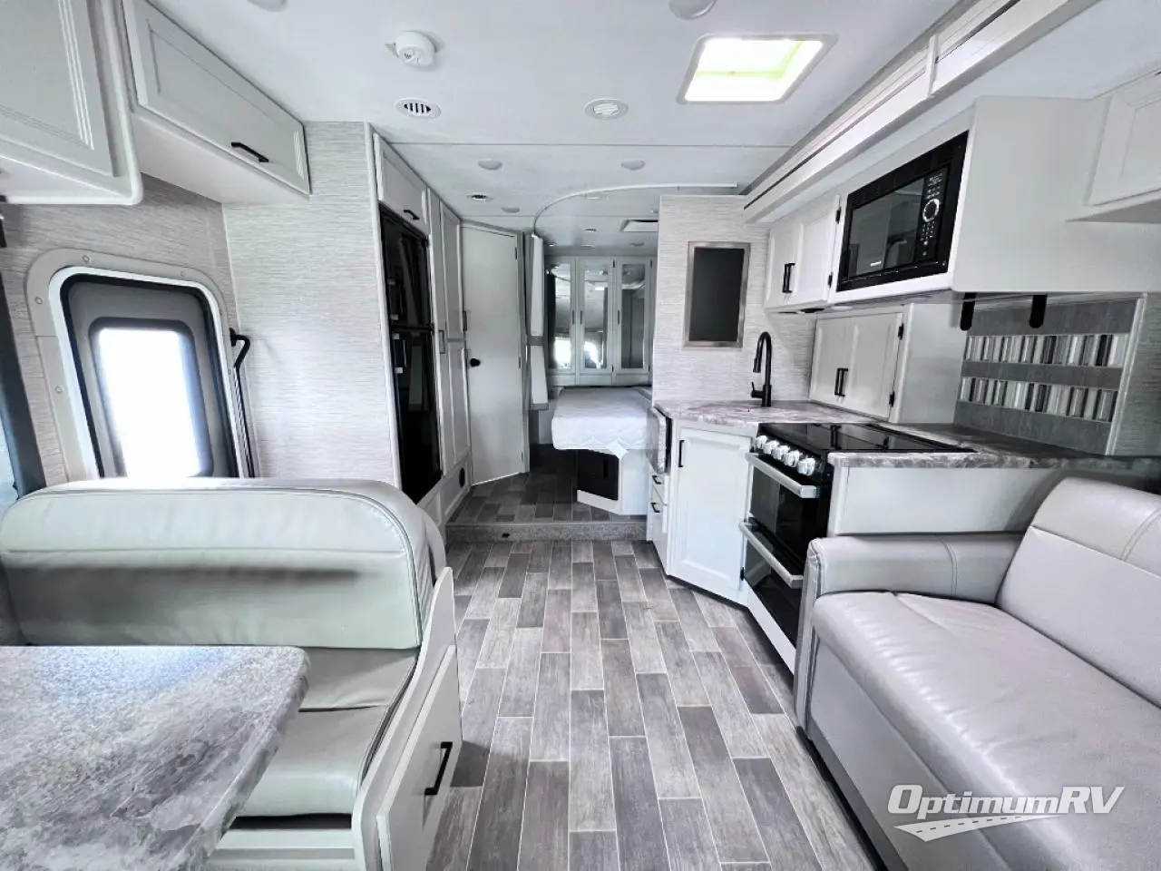 All of your getaways will be something to talk about when you take them in this Chateau Class C gas motorhome! You'll feel like royalty as you spend your nights sleeping on the RV king bed in the rear, and the privacy curtain will allow you to close off the space so that you can sleep in solitude and change clothes for the day. Another functional space is the kitchen because it has a flip-up countertop that will fold away when not in use, and the double-door refrigerator will be so helpful for keeping all of your perishables fresh throughout your trip. You will have full kitchen amenities, a full bathroom, loads of storage, and sleeping space for six or seven. You might even like to add the optional bedroom TV and/or the exterior 32" TV option.