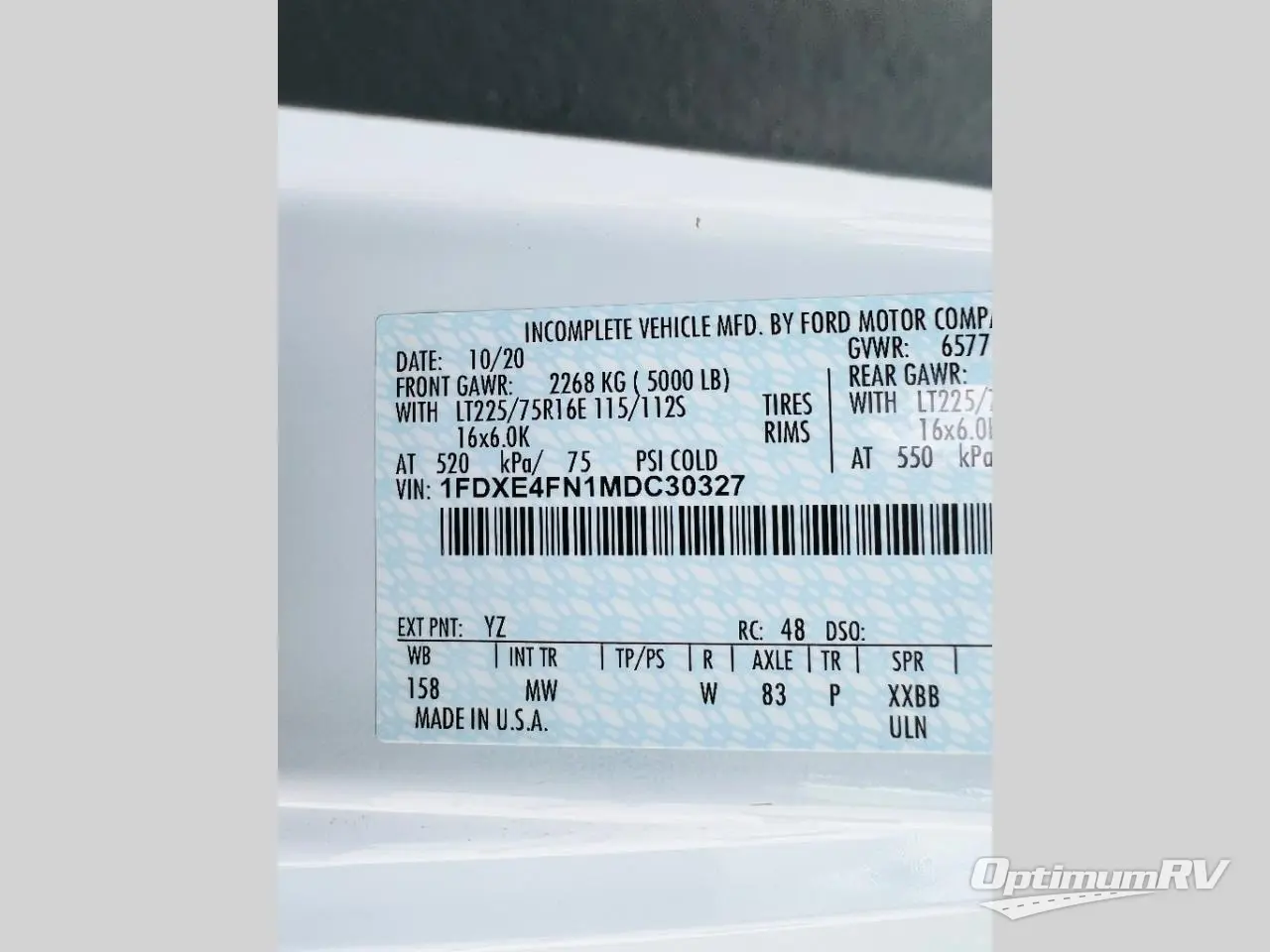 - VIN 1FDXE4FN1MDC30327