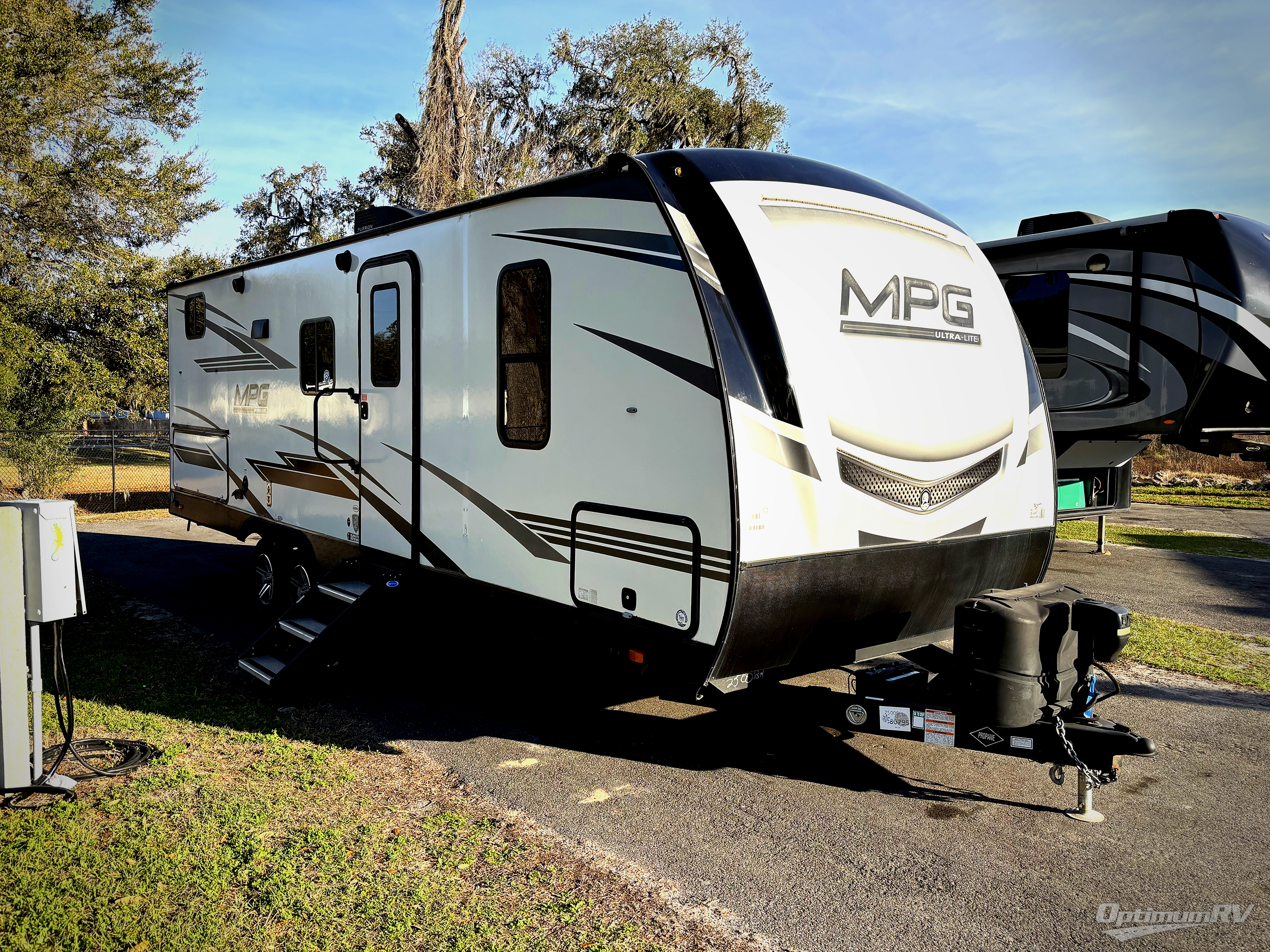 With any MPG travel trailer or toy hauler by Cruiser you will find a 6' 11" barrel roof, Azdel composite laminated walls, and a high gloss fiberglass front cap with LED lighting for a sleek look. There are seamless kitchen countertops and plywood flooring that will be easy to clean, plus residential hardwood cabinets with hidden hinges for a more at-home feel. The slam latch baggage doors with magnetic latches will make loading up easier than ever, plus the full belly storage system includes LED lights you are sure to appreciate. Each model also includes multiple charging stations with 12v and USB ports, a four speaker soundbar system to listen to your playlists, and a dual ducted A/C to keep you cool during those hot summer months!