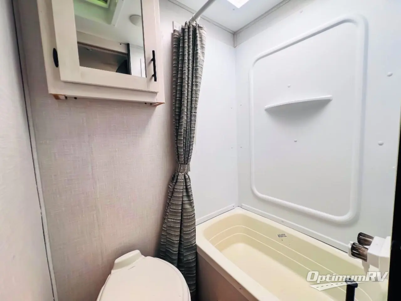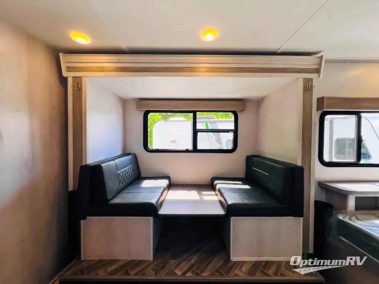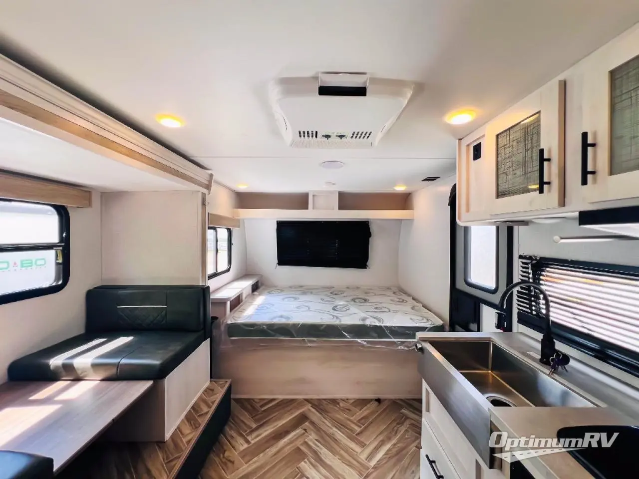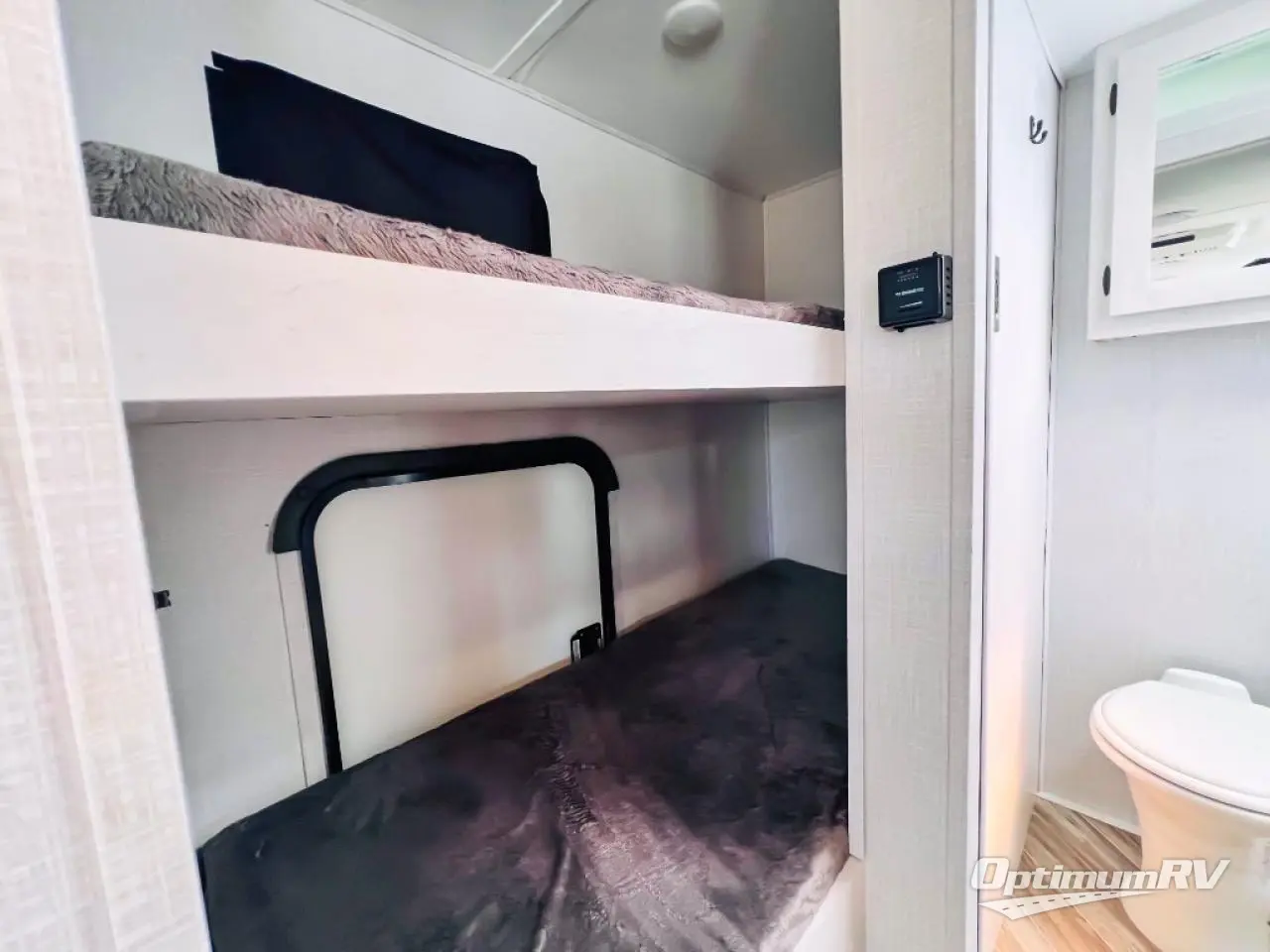 With a set of bunk beds, the whole family or friend gang can camp together in this travel trailer! And you will appreciate having a front queen bed to lay your head on at night. The two burner range is just waiting for you to prepare a delicious meal and the booth dinette is a great place to enjoy it at, plus it can be used as an extra sleeping space. The rear corner bathroom has a shower with a skylight above for added natural lighting as you get ready each morning!