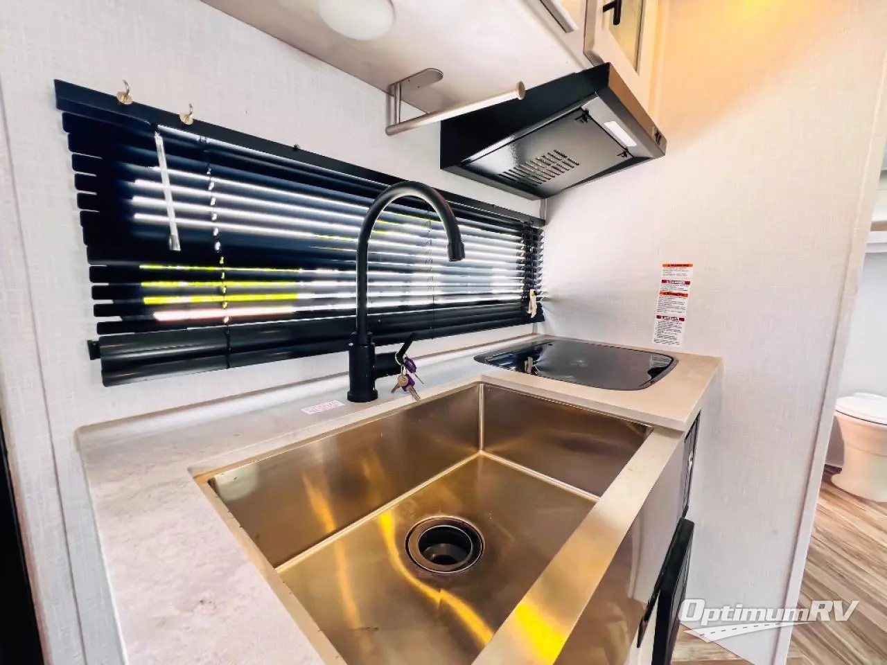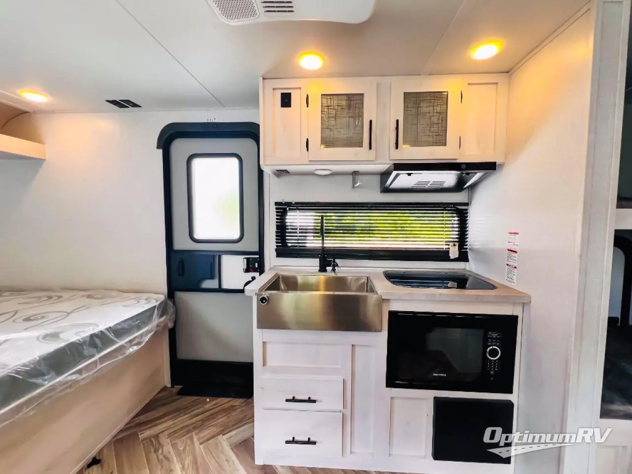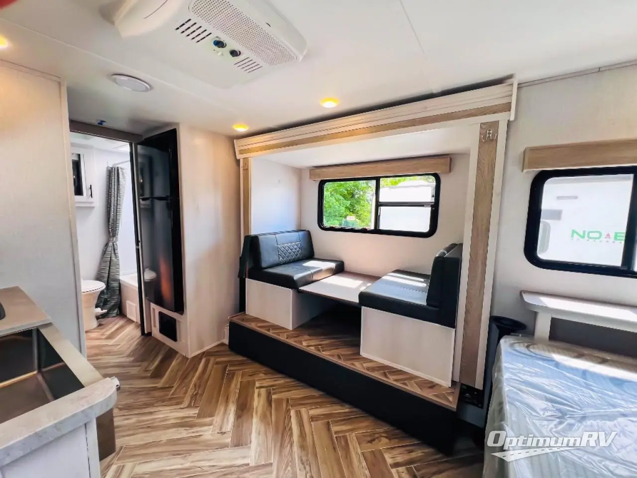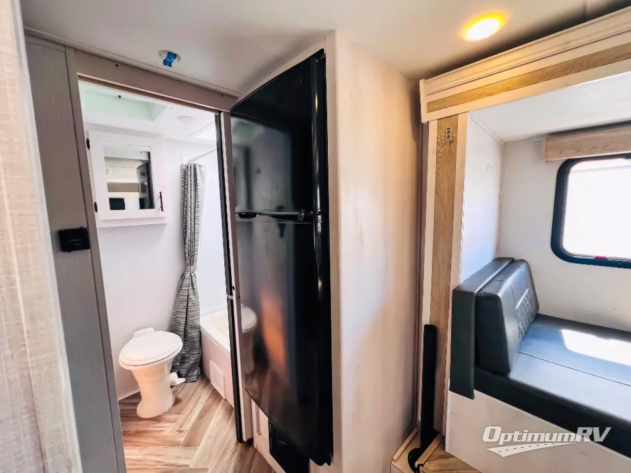 With a set of bunk beds, the whole family or friend gang can camp together in this travel trailer! And you will appreciate having a front queen bed to lay your head on at night. The two burner range is just waiting for you to prepare a delicious meal and the booth dinette is a great place to enjoy it at, plus it can be used as an extra sleeping space. The rear corner bathroom has a shower with a skylight above for added natural lighting as you get ready each morning!