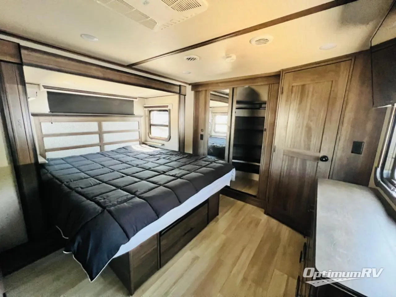 With any Solitude fifth wheel by Grand Design, you will get maximum insulation from the thermal roof design, the exclusive fully laminated walls, the triple insulated main floor, the Rail-Tite underbelly seal, the insulated gooseneck and the insulated baggage doors. The MORryde rubber pin box system utilizes a unique rubber shear spring to positively deal with rough towing and road shock, the Tire Linc TPMS system monitors pressure and temperature, and the 6-point hydraulic system allows you to setup easily. And the upgraded shower system, the hardwood window valances, the oversized kitchen pantry, the window above the master bed headboard, and the Rockford Fosgate stereo entertainment system with HDMI and App controls are a few more reasons you will love these extended-stay fifth wheels!