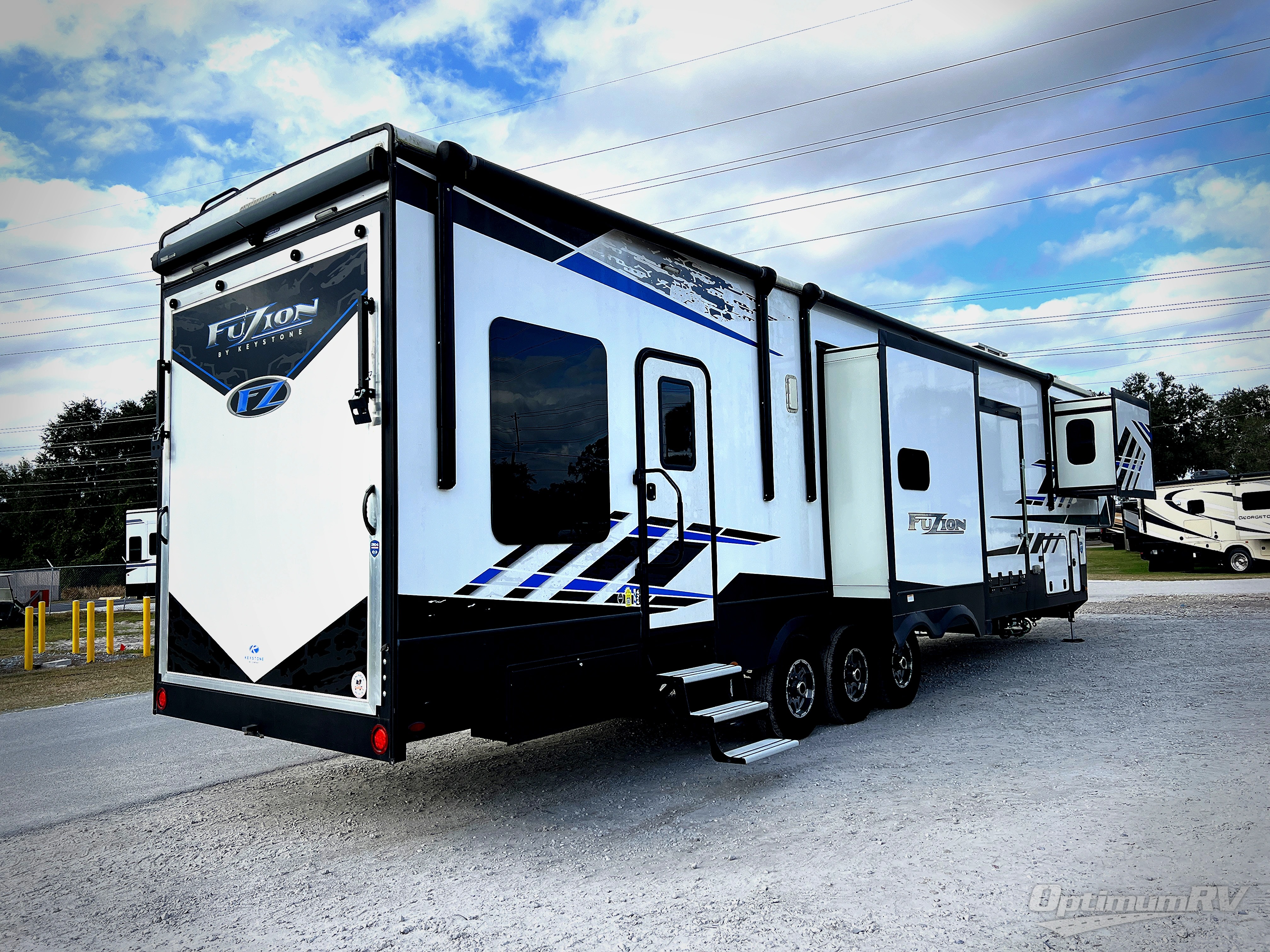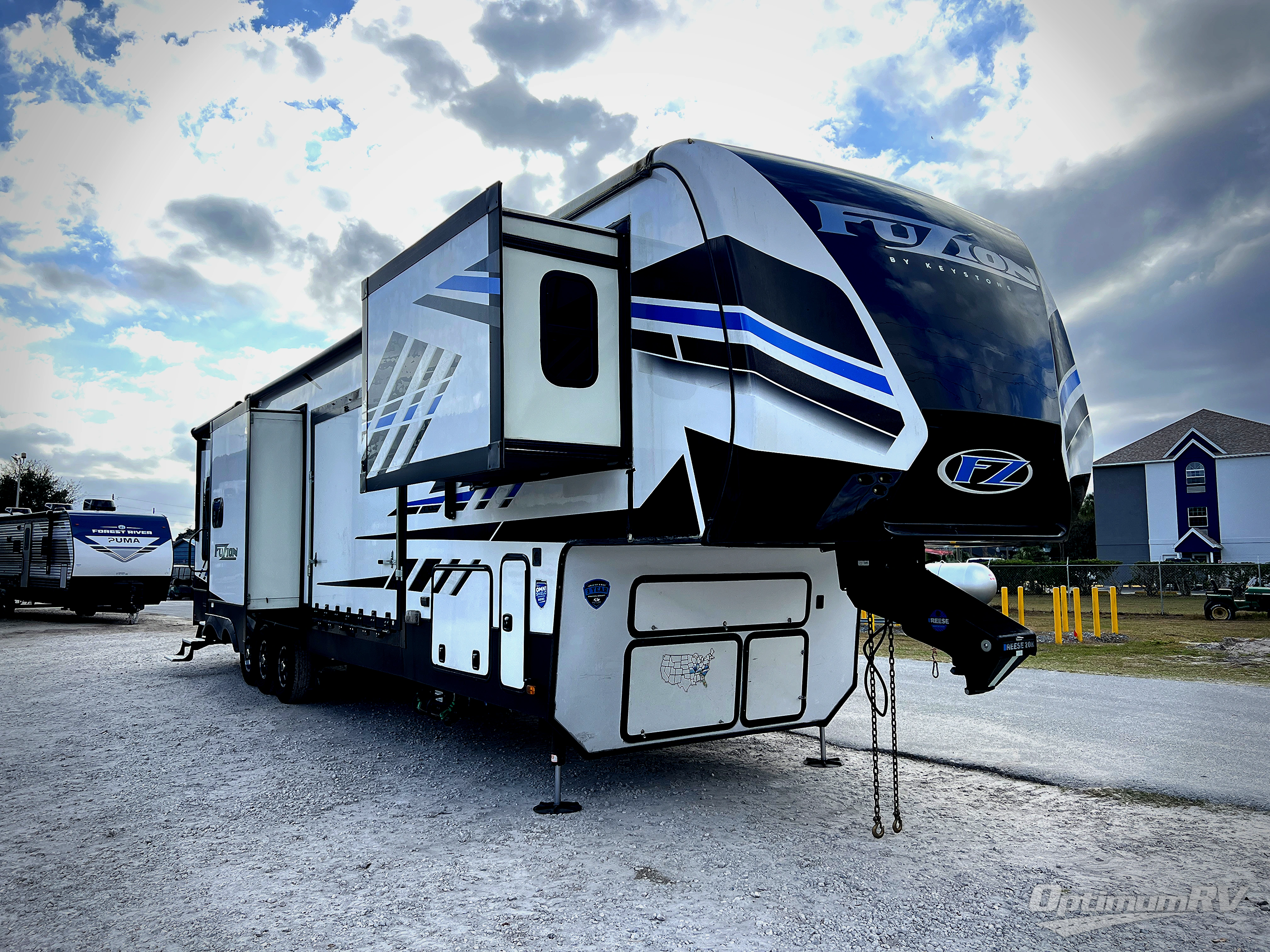 Get your adrenaline pumping with any one of these Keystone RV Fuzion fifth wheel toy haulers! The frame welded, Adjust-A-Trac tie-downs have 38 points to fully secure your toys as you travel, and the extended garage lengths have outside storage so you can haul bigger toys. A fully enclosed fuel pump station is integrated with the iN-Command smart RV control system with Global Connect. The equalizer six-point hydraulic leveling system makes setting up a breeze. And the exclusive Omni-Chill technology offers high-efficiency air conditioning and maximum cooling. The interior provides fiberglass backed linoleum flooring, extra-tall slide height, solid wood cabinet and drawer frames, and extra tall ceilings with crown molding to mention a few attention to details features. Choose a Fuzion because you want to be seen with the best RV garage for power sports enthusiasts and enjoy comfort and amenities when you are away!