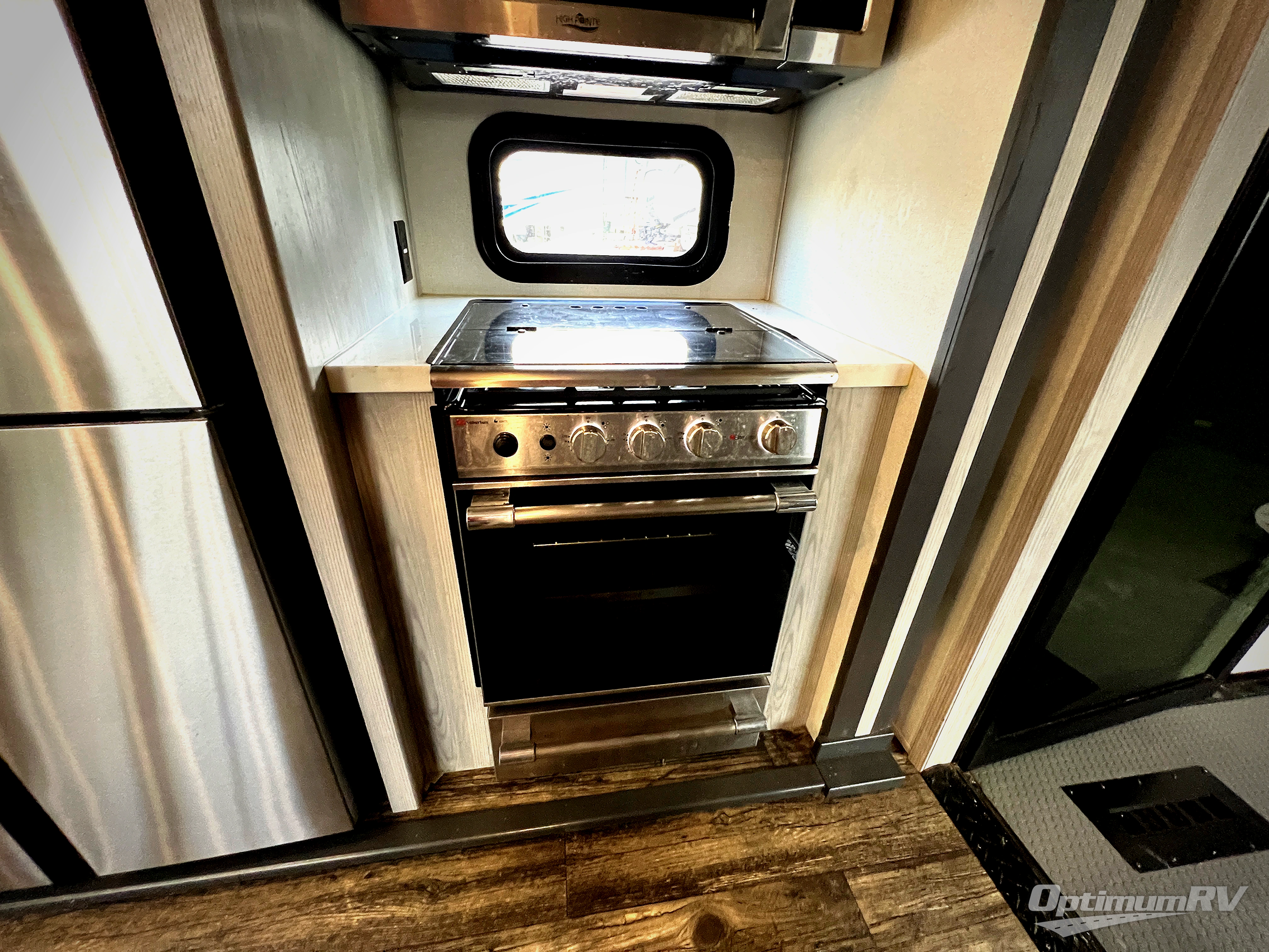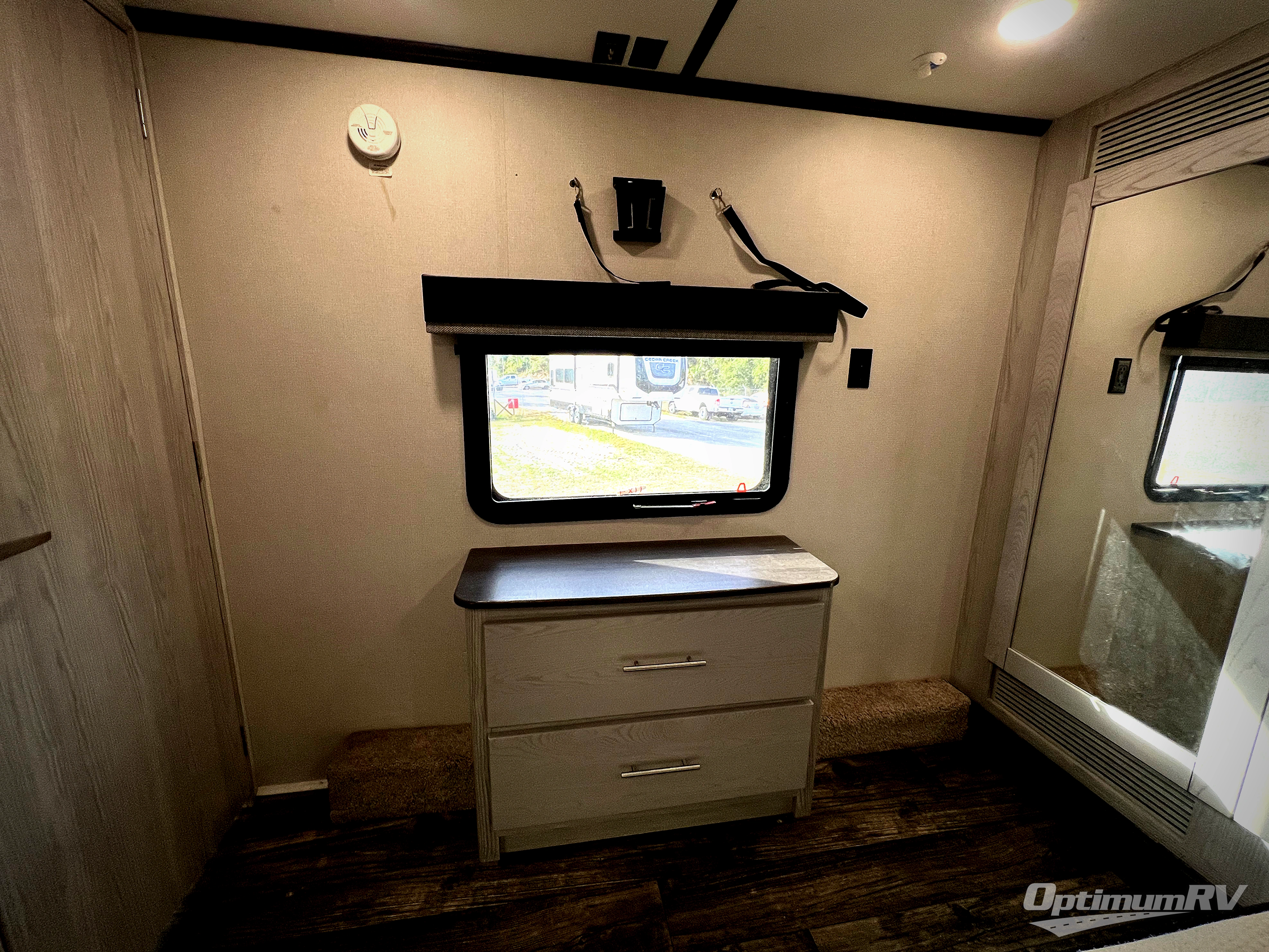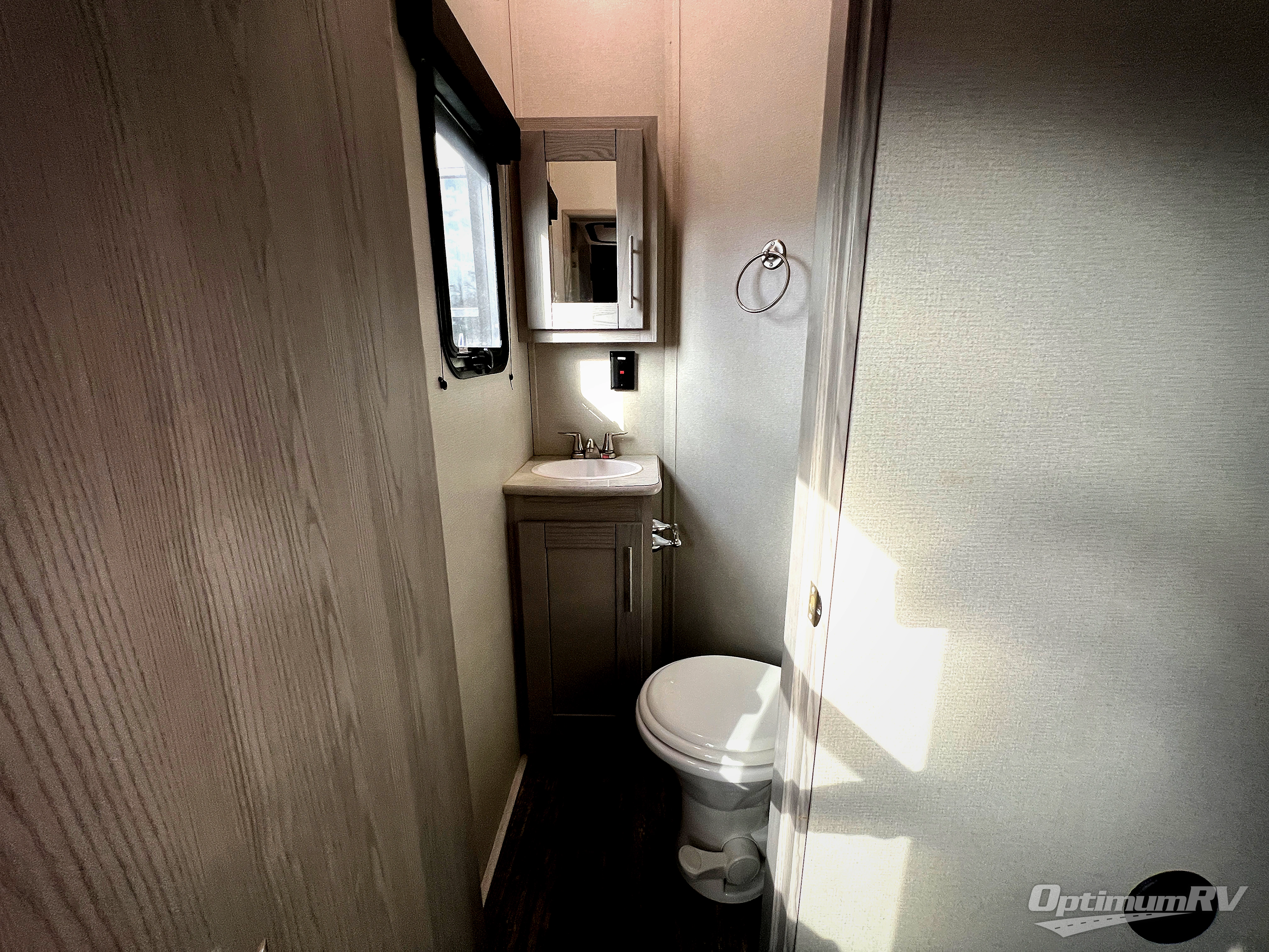 You're going to be the talk of the campground with a side patio on this toy hauler! As you walk-through the patio entry door, you will notice a table with swing-out stools to your left and a swiveling entertainment center with an LED TV, a fireplace, and a hidden pantry to your right, plus a residential four person sofa with heat, massage, and 110V/USB ports to charge your electronics. You will enjoy your own privacy with the front private bedroom which has a residential queen bed slide, a dresser with an LED TV, and a front master closet prepped to add an optional washer and dryer, plus an entrance into the dual entry bathroom. The rest of your gang will enjoy a good night's rest in the 13' garage area with dual opposing sofas with a queen bed above them and a loft with bunk mat. The garage also has a half bathroom for their convenience, an LED TV for entertainment, and a 8' MORryde zero gravity ramp door to easily load an unload your toys!