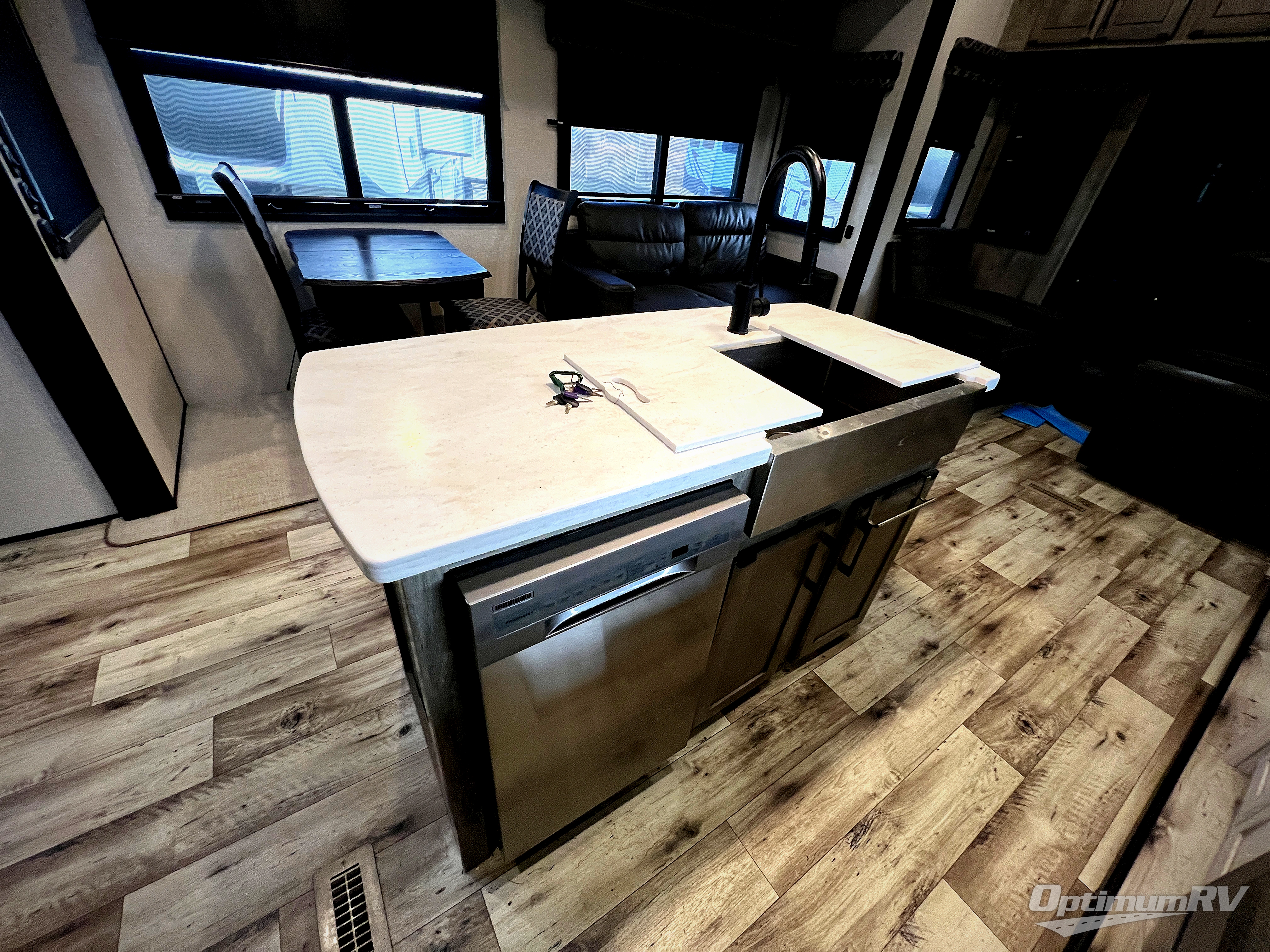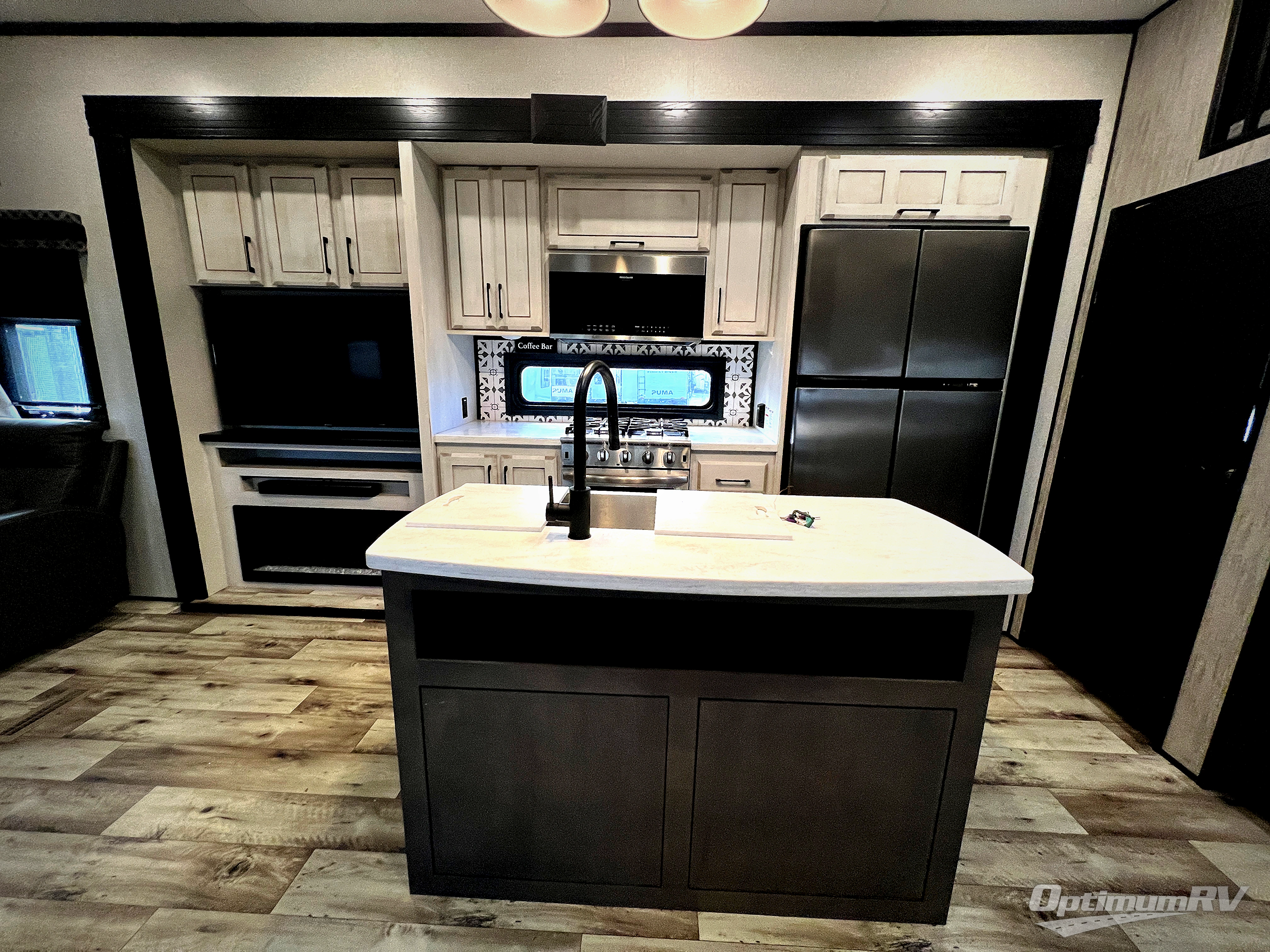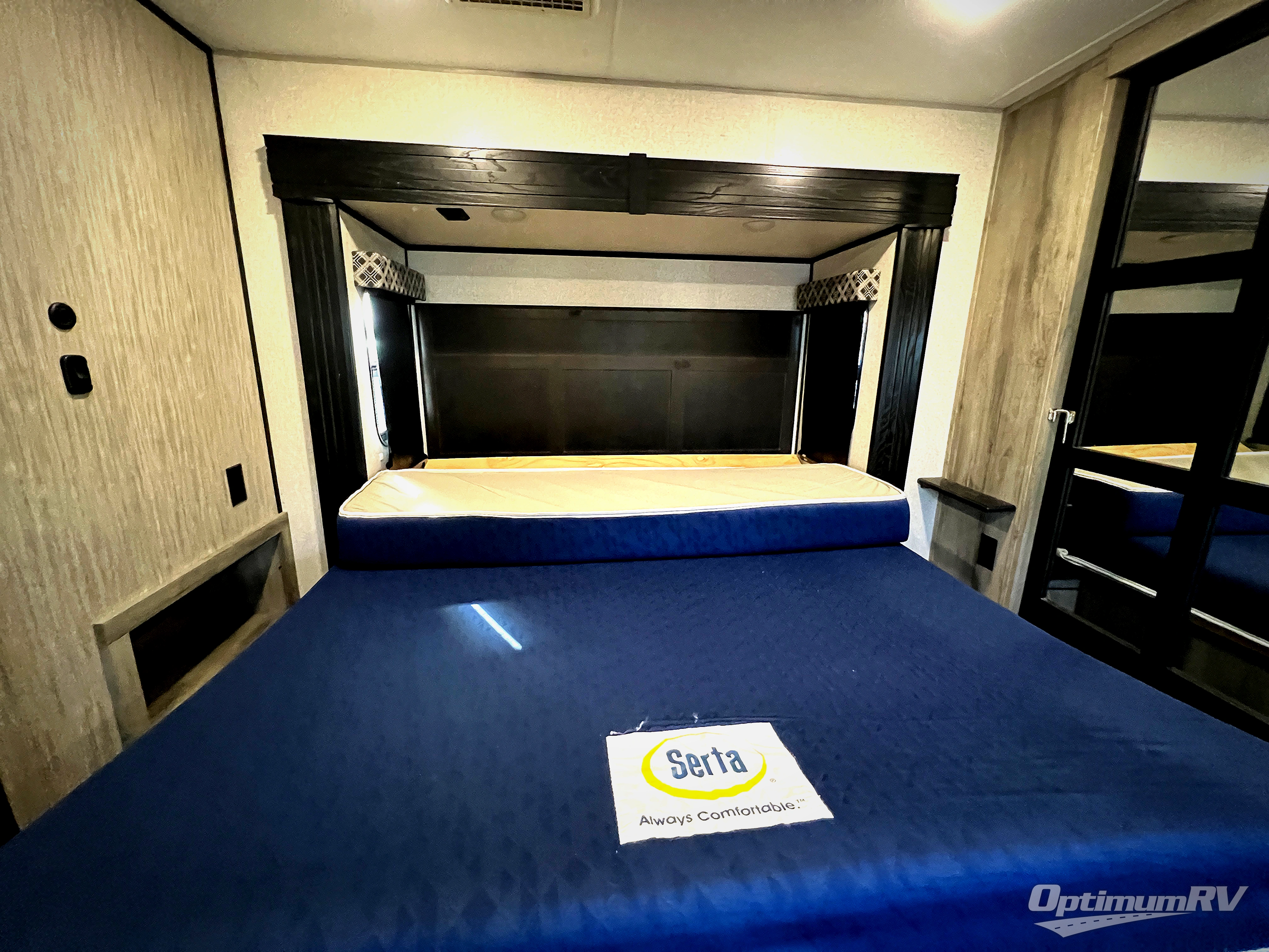 With any KZ Durango Gold full-time luxury fifth wheel, you will enjoy the look of modern farmhouse cabinetry, upgraded kitchen appliances such as a 30" convection microwave and 24" oven with four burner range, plus a stainless dishwasher. Other top features include an electric tilt bed with Serta Comfort foam king mattress, theater seating with cupholders and a USB plug, plus heat, massage, and power recline/decline features. You will also appreciate a handy central vacuum system with multiple attachments that stores out of sight. Each Durango Gold is constructed with six-sided aluminum framing, and has heated, insulated and an enclosed underbelly. It is also constructed with Tufflex roofing material which is flexible, puncture resistant, and reflective. Some additional standout features include a fully-vented attic system, and a Durango Towing package which includes a 2" towing receiver hitch with 4-pin wire harness connection. This will provide you with 3,000 lbs. of towing capacity. Come choose your favorite lightweight high-profile wide body luxury fifth wheel today!