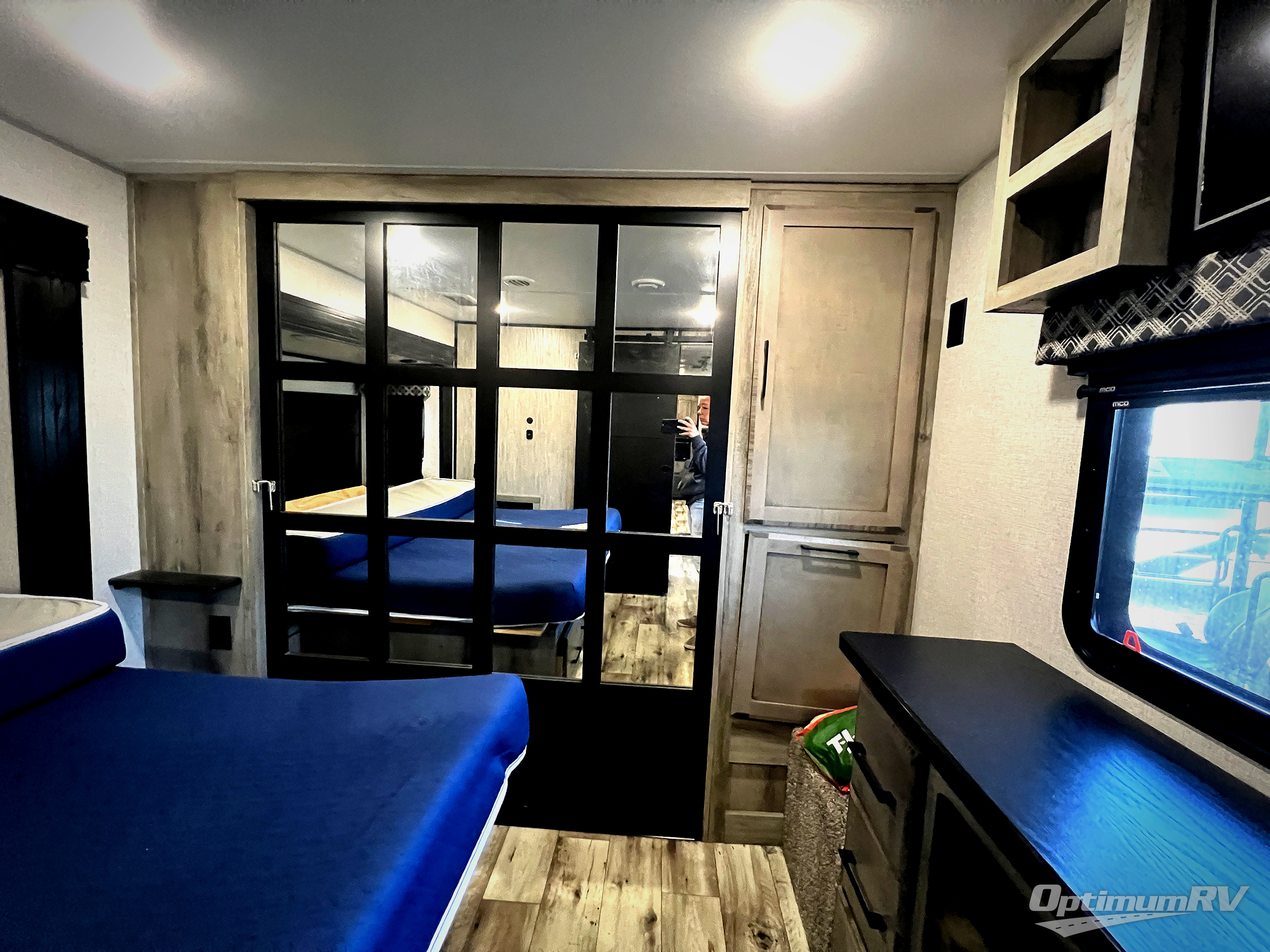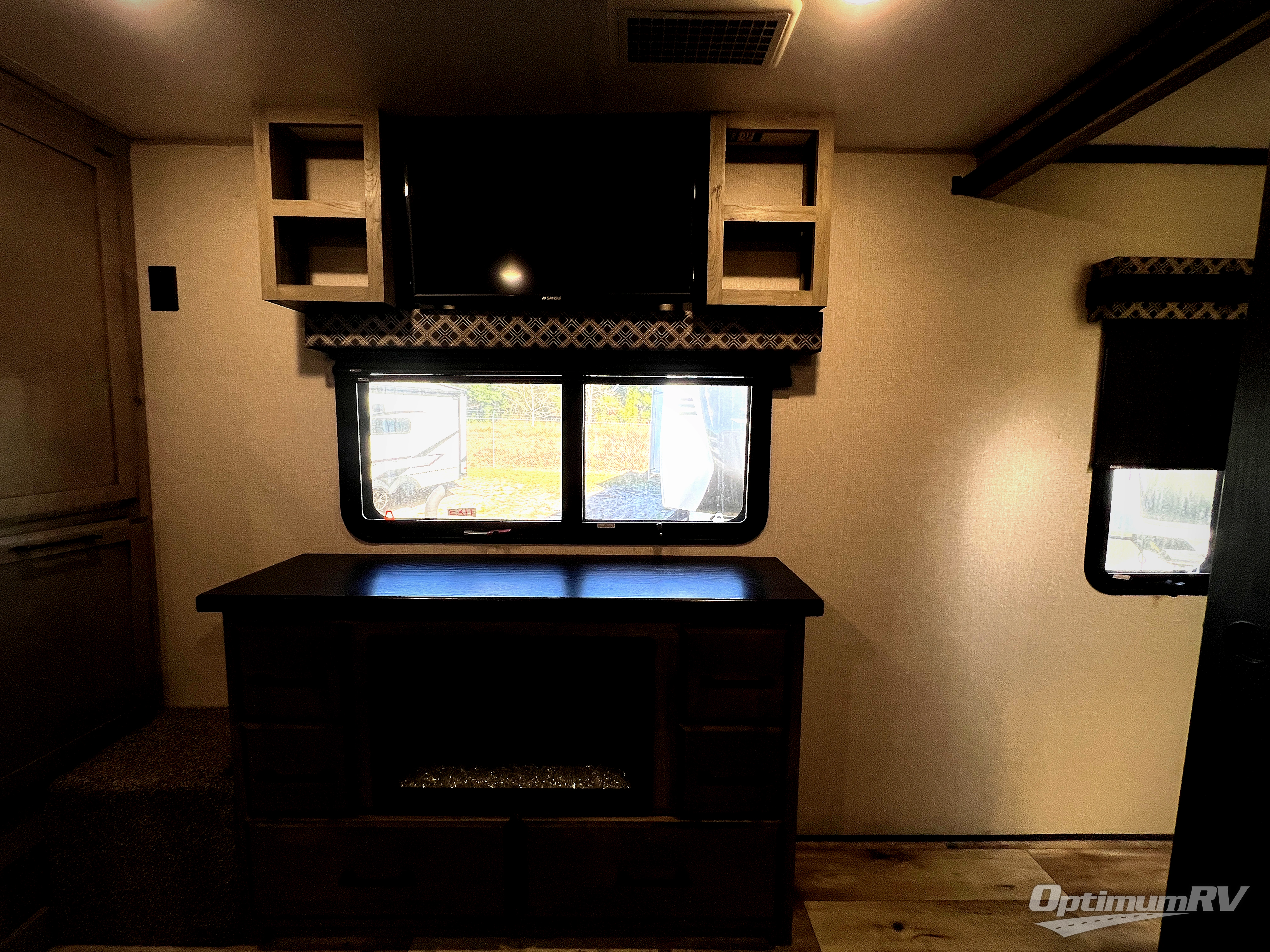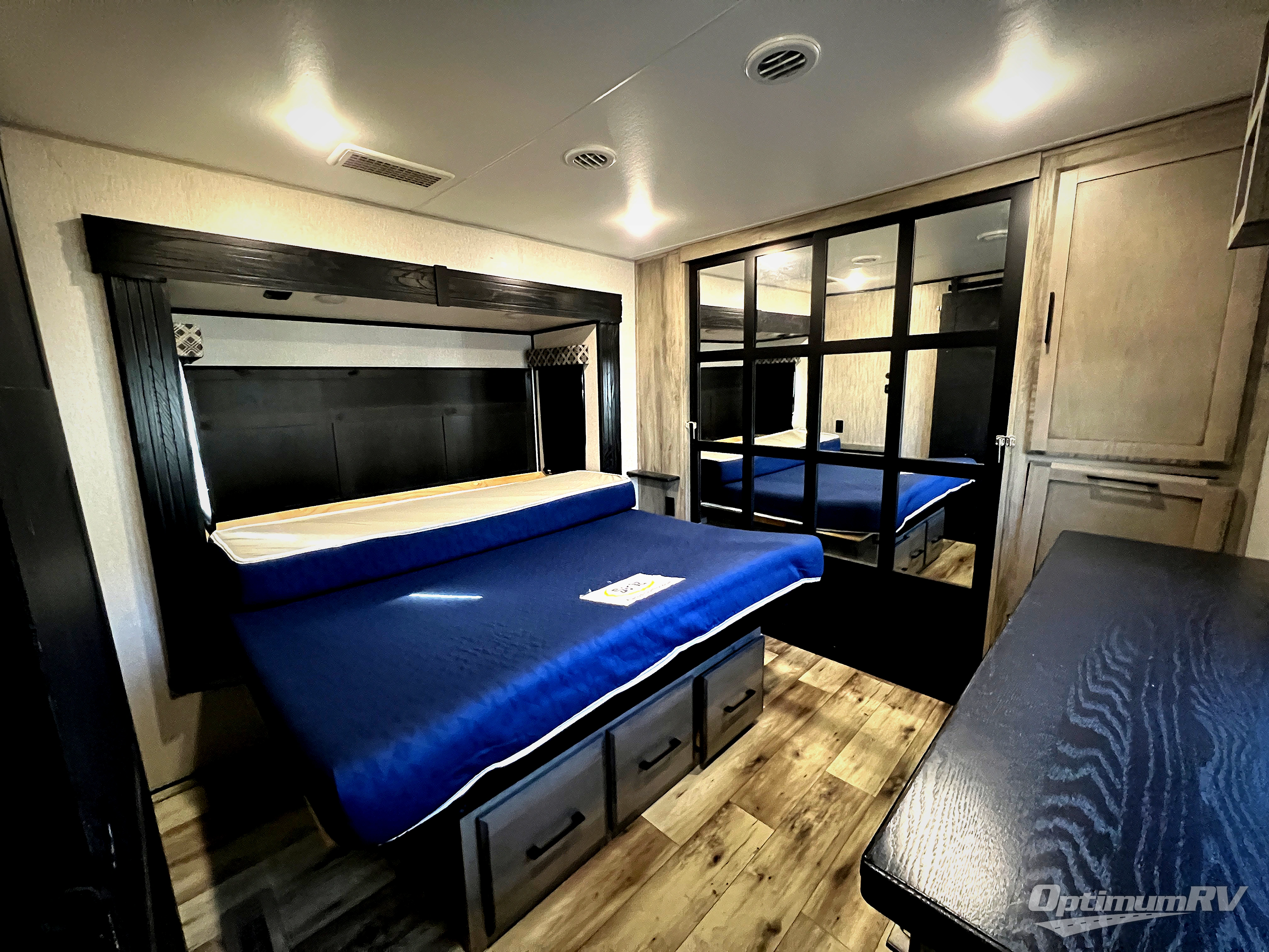 When you enjoy traveling with family and friends, and enjoy the outdoors just as much as the indoors, this Durango Gold can provide everything you want, plus more! Beginning with the rear patio door that leads to the unique patio deck that provides a place to relax and unwind as well as stow a few items above ground. When you are ready to experience luxury and comfort head back inside to the fireplace below the 50" Smart LED TV and sit in the chairs or on the hide-a-bed sofa, or even at the dining table. There is a full-timer's desk option to choose as well. The cook will have full amenities, upgraded appliances, a kitchen island with a farmhouse stainless steel sink, solid surface countertops, and a pantry to store lots of goodies. The middle extra room can be utilizes as a bunkhouse, another living area, or even an office because of the desk top, plus there is a queen size loft above. And you will be able to sleep like a king in the front bedroom with a fireplace. There is plenty of storage for your clothing, as well as a 32" Smart LED TV, plus a place that has been prepped to add an optional washer/dryer if you choose.