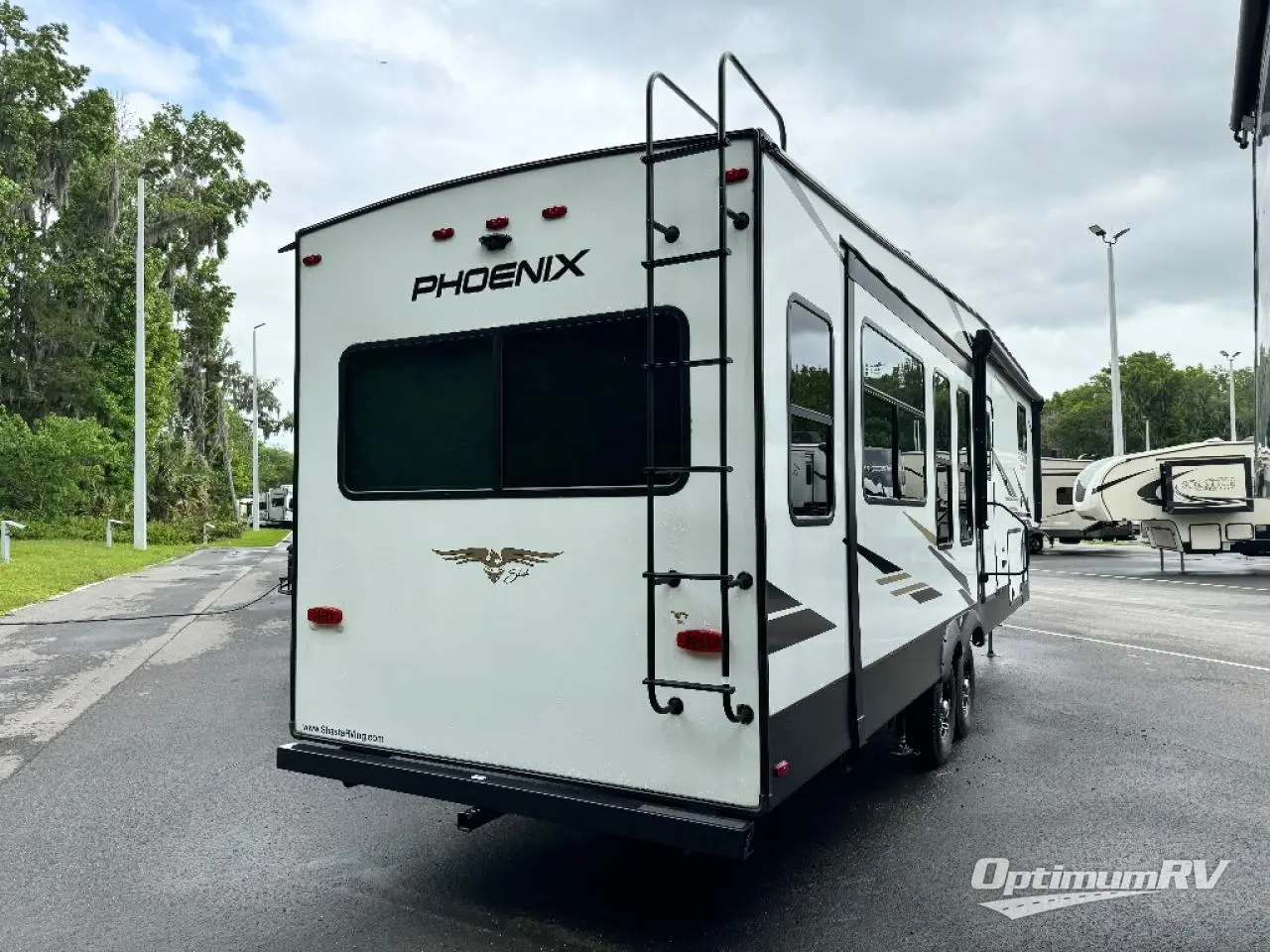 With any Phoenix mid-profile fifth wheel by Shasta RVs, the stand out construction features include residential 5" truss rafters, full walk-on roof decking, vacuum bonded and aluminum framed sidewalls with rot proof AZDEL composite sidewall panels, a six-layer, bonded and aluminum framed main floor structure, and Weather Shield+ that offers cold and hot testing, space age reflective technology, a ducted furnace to an enclosed, insulated and heated underbelly and more so you can camp during any season you wish. The interior offers modern features and style from the modern entertainment center prepped for a 50" up to 58" TV, the coordinating solid wood slide out fascia, the decorative, modern window box valances/lambrequins, the motion sensor light in the bathroom, and the durable and seamless Thermofoil, granite/marble style counters that are heat resistant. Don't give up luxury and high-end features when you camp, choose a Phoenix!