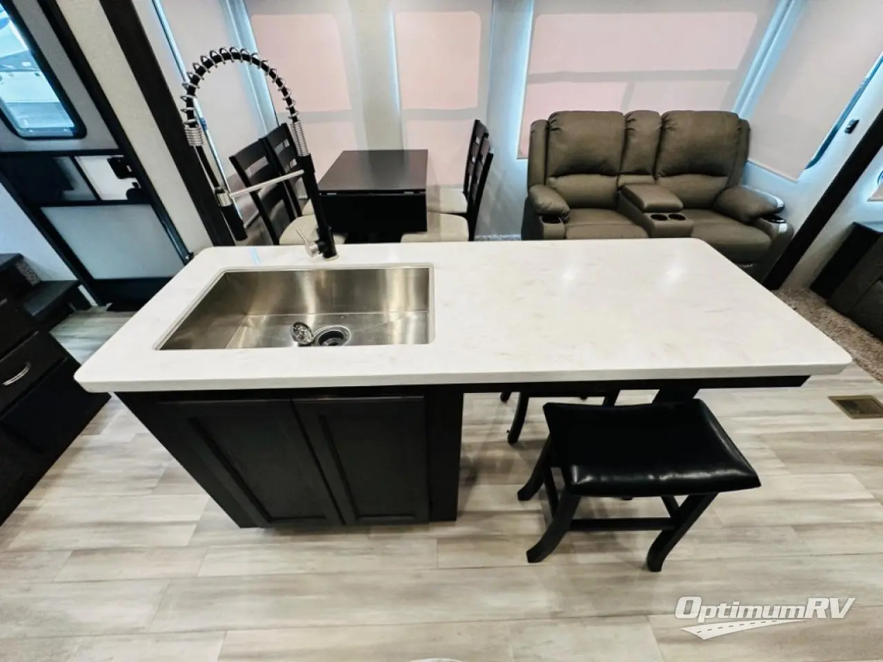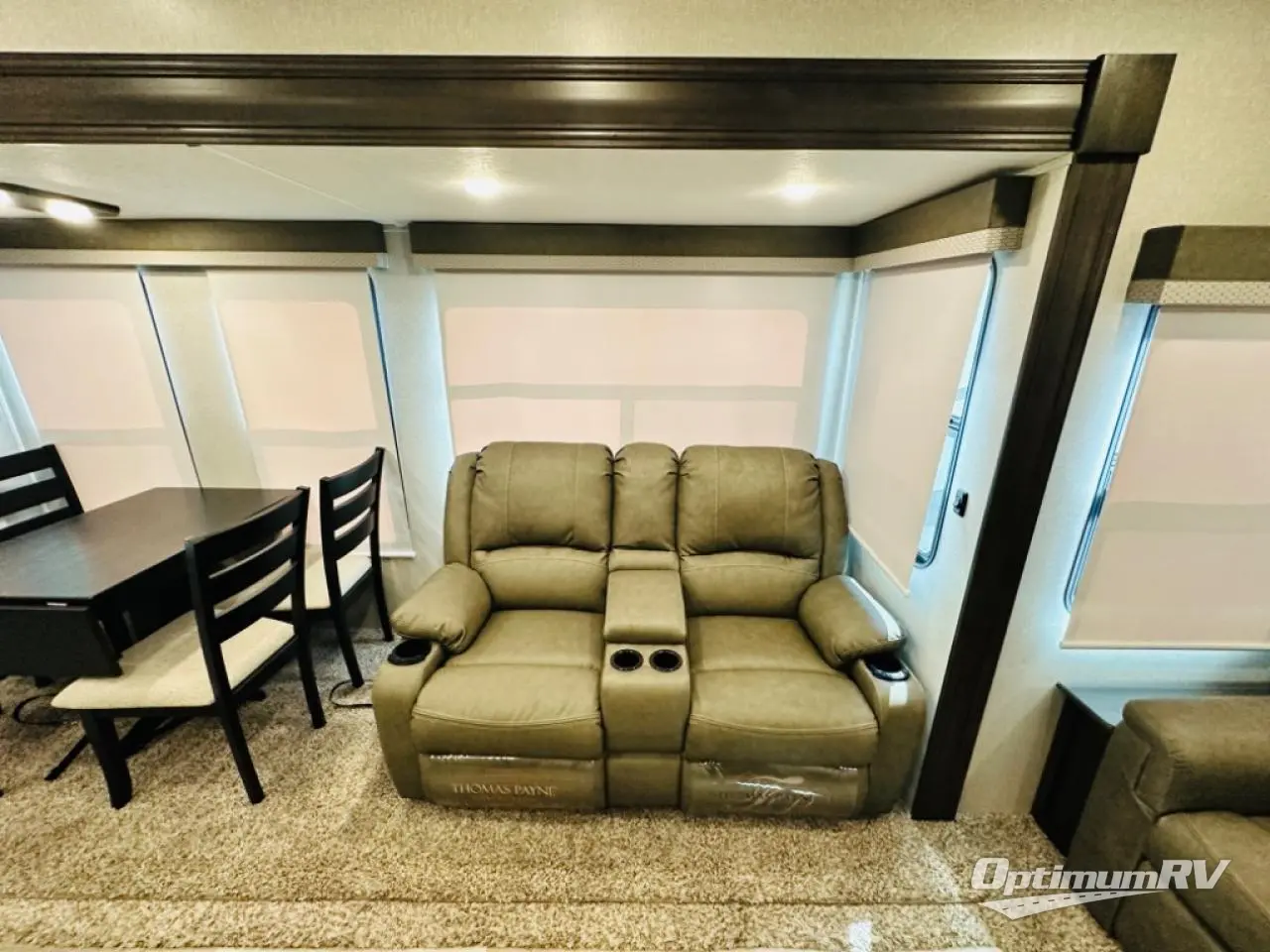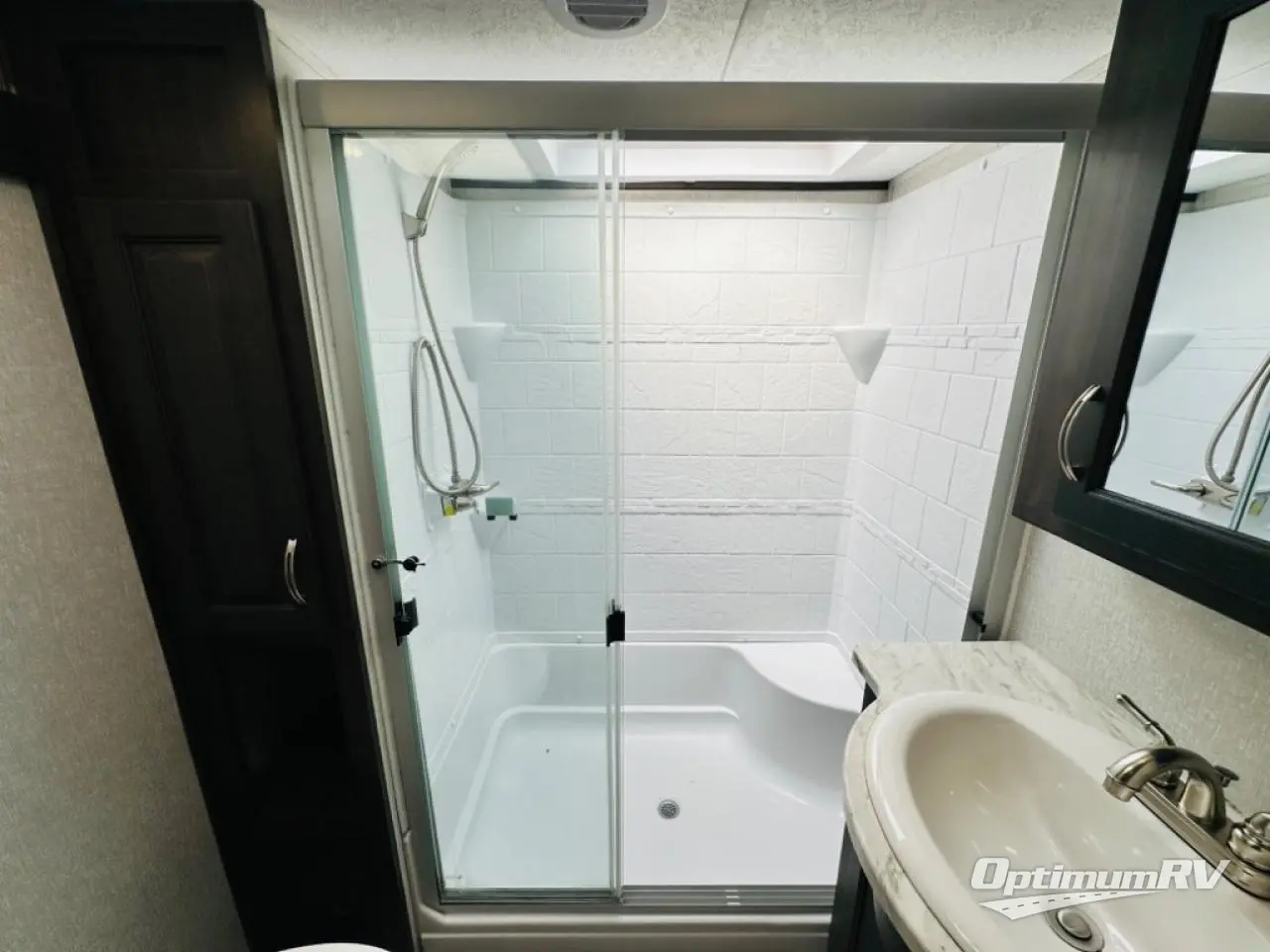 Sit back and relax on the theater seats, the rear tri-fold hide-a-bed sofa or on one of the four chairs at the free standing table. You can enjoy the outdoors through all the windows as you plan your outside activities. The cook may like to whip up a meal using the full kitchen amenities including two pantries, and extra counter space along one wall plus the island which includes two barstools. At night you can get cleaned up in the full bathroom with a shower that includes a seat and sliding glass doors, plus a large linen cabinet. The front bedroom offers privacy when you have overnight guests sleep on the sofa, and extra floor space to move about thanks to the slide. And the front wall wardrobe allows you to keep your clothes wrinkle-free, and you might even like to add a washer/dryer to the prepped space.
