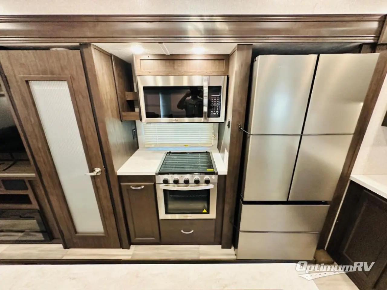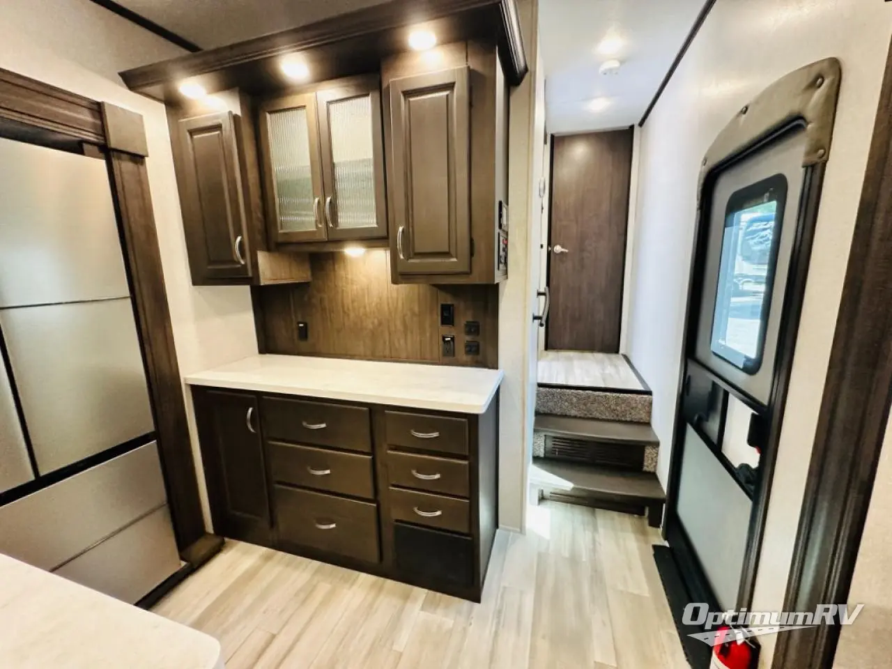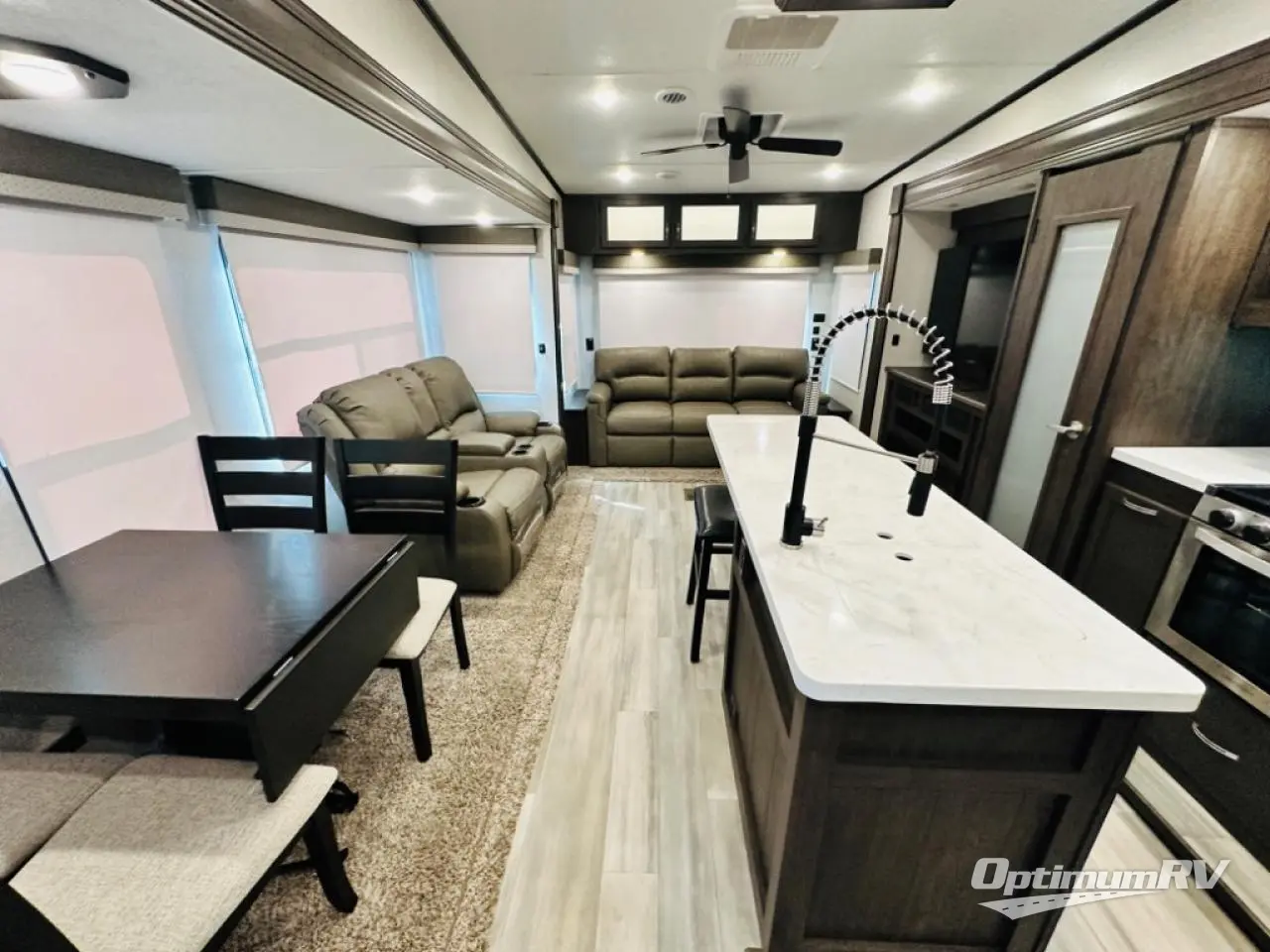 Sit back and relax on the theater seats, the rear tri-fold hide-a-bed sofa or on one of the four chairs at the free standing table. You can enjoy the outdoors through all the windows as you plan your outside activities. The cook may like to whip up a meal using the full kitchen amenities including two pantries, and extra counter space along one wall plus the island which includes two barstools. At night you can get cleaned up in the full bathroom with a shower that includes a seat and sliding glass doors, plus a large linen cabinet. The front bedroom offers privacy when you have overnight guests sleep on the sofa, and extra floor space to move about thanks to the slide. And the front wall wardrobe allows you to keep your clothes wrinkle-free, and you might even like to add a washer/dryer to the prepped space.