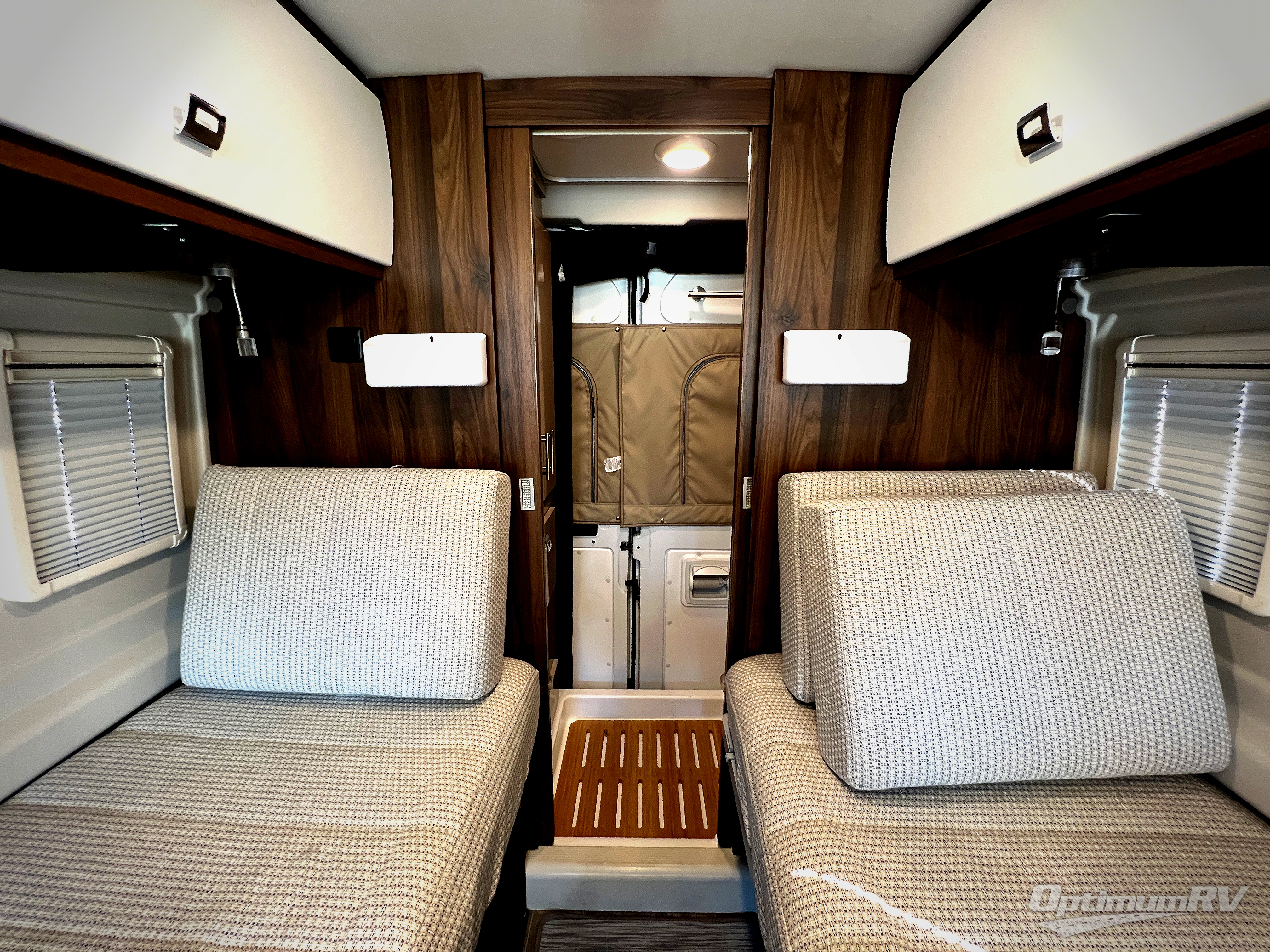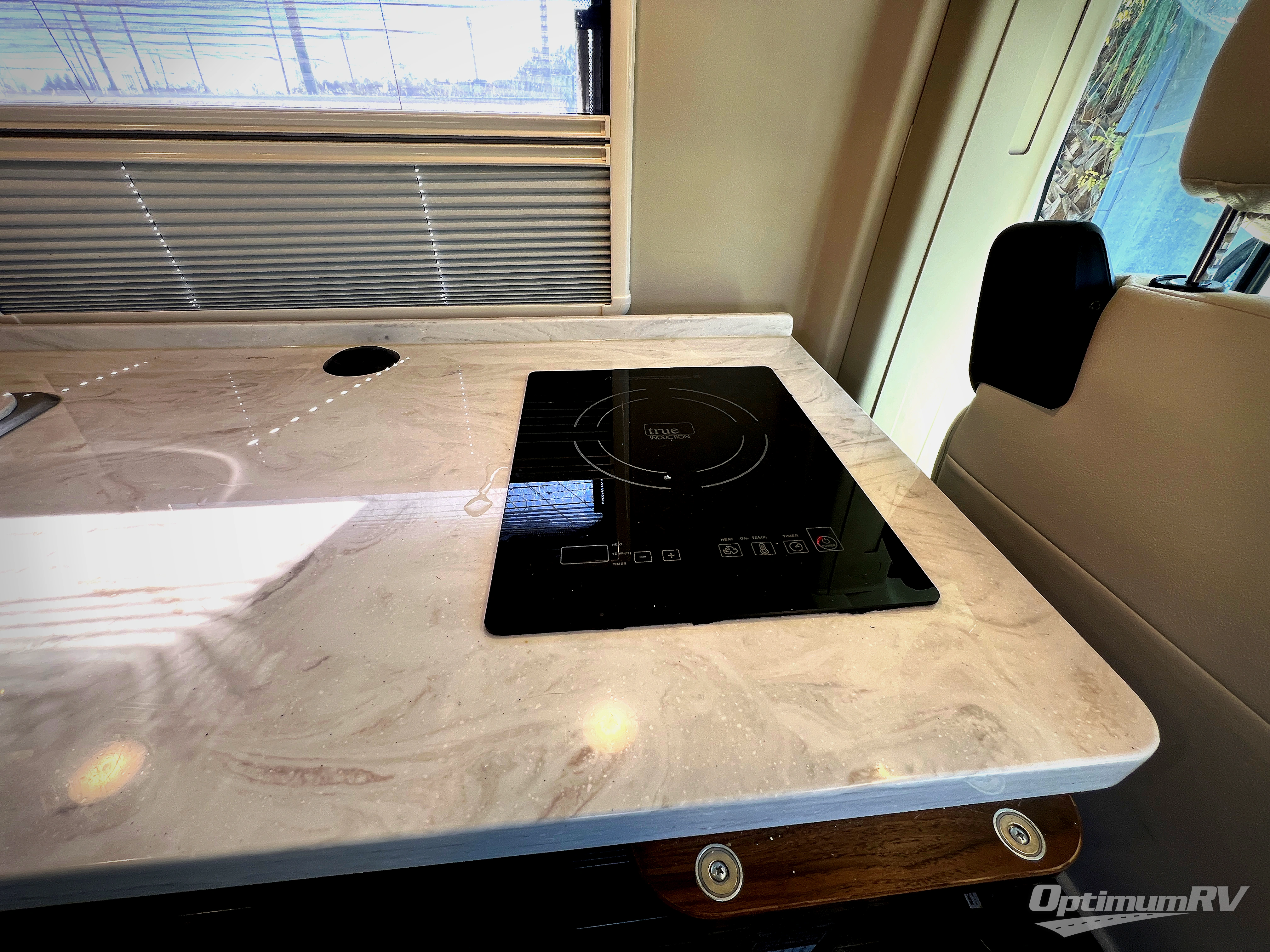 Pack your bags and head out across the country in this Travato Class B gas motorhome! The two twin beds can convert into a king-size bed if you're traveling with your friend or spouse, and there is a convenient rear wet bath to freshen up every day. Prepare breakfast on the single-burner induction cooktop or in the convection microwave, and the pull-out countertop extension will give the chef more space to prep. The driver's seat can swivel to use this countertop as a table, and the swivel passenger's seat can use the additional adjustable/removable table for coffee. This model also includes the lithium Pure Energy Management System that provides 9,600W hours of store energy so that you can go off the beaten path for the ultimate journey!
