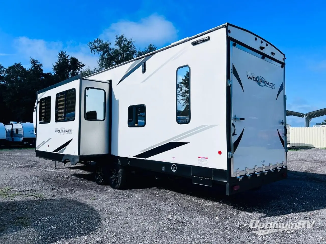 Run with the pack in any one of these Forest River Cherokee Wolf Pack toy haulers! They are affordable and versatile with a 102" widebody design to pack in all of the necessary features for a great adventure with your family and toys. The grey high gloss gel exterior will turn heads on the highway and the LED interior/exterior lights will make life easier. An outside shower with hot and cold water helps to keep the mud outside where it belongs. With an external 30 gallon fuel station, you won't have to worry about your toys being low on fuel. The Platinum package adds extra conveniences like a ramp door patio deck railing system, a Happijac bed lift system, and an industrial rubber garage floor on enclosed garage models. Come find the perfect model for you today!