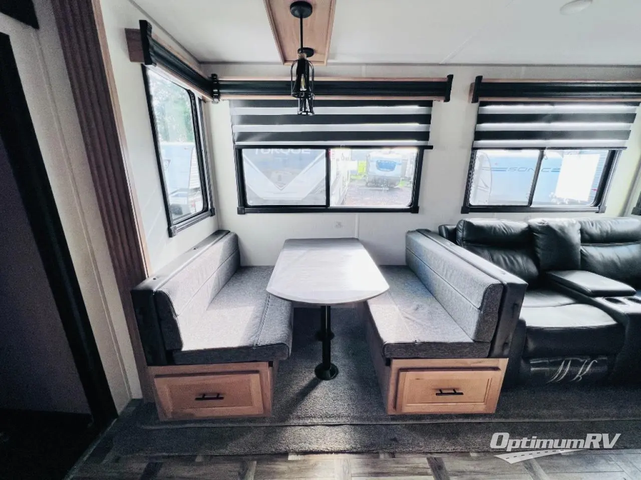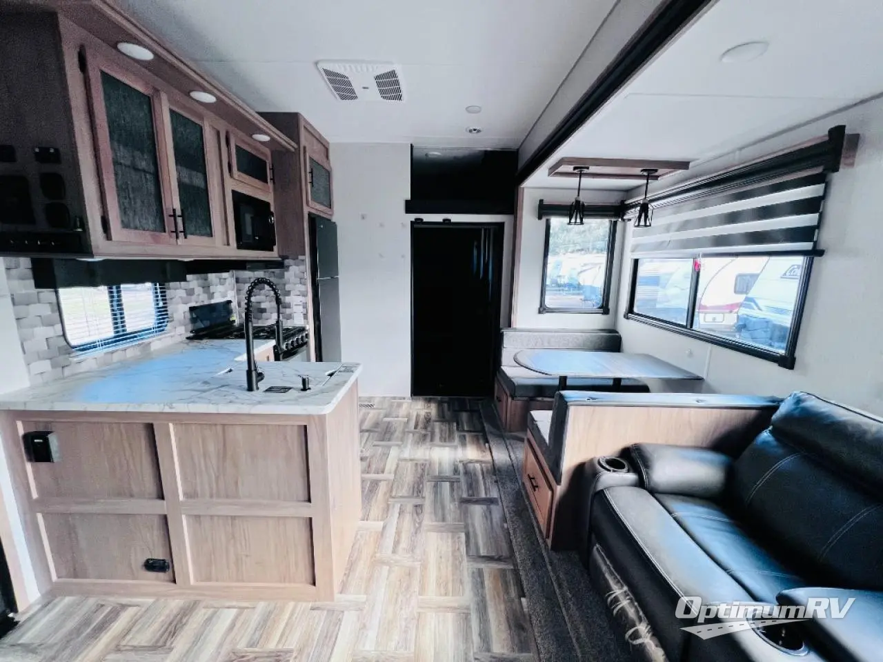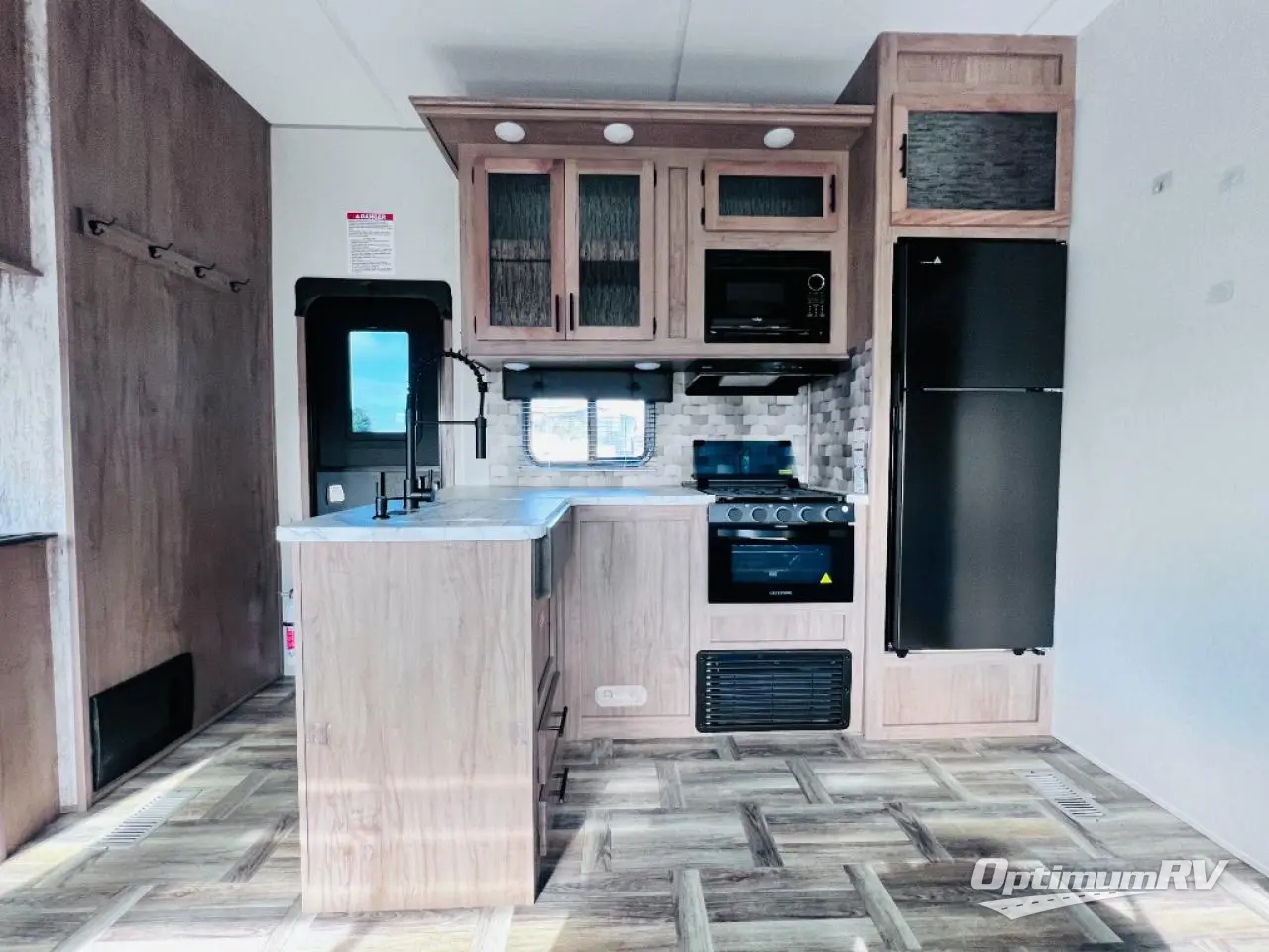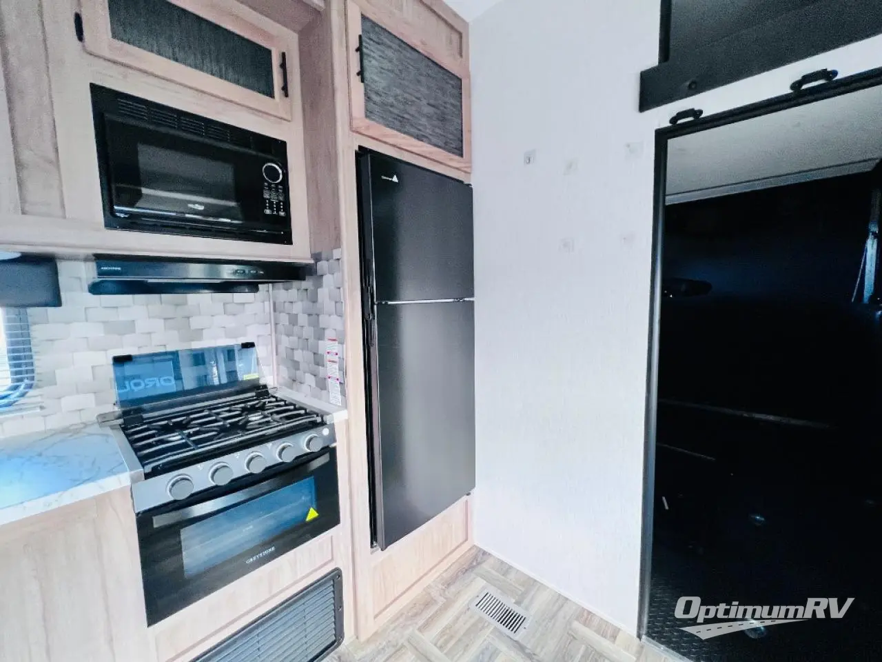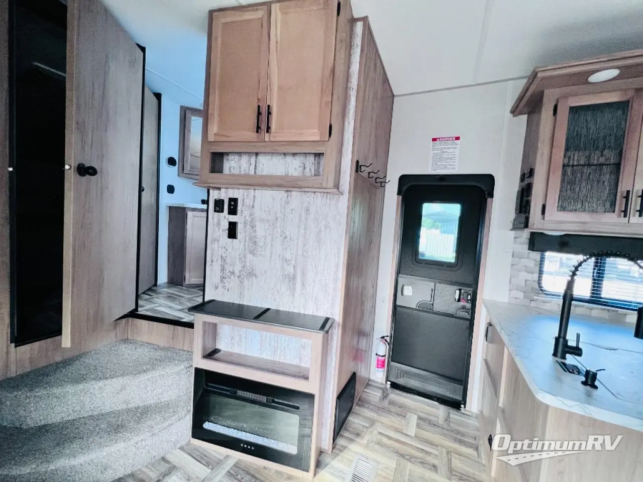 With dual entry doors, you will experience a smooth flow of traffic in and out of this toy hauler! One of the entrances leads into the 12' garage area with a folding dinette table below a Happijac bed lift system, and an area prepped to add an optional washer and dryer. The chef will have everything they need to prepare their best home cooked meals indoors or they can head to the outside kitchen to breathe in some fresh air while they cook. Gather together at the booth dinette for game night or relax on the sofa across from the entertainment center with a fireplace. When you're ready to wind down your nights, clean up in the dual entry bathroom with the radius shower then head directly into the front private bedroom where you can rest your head on the 67" x 74" Wolf Pack king bed!