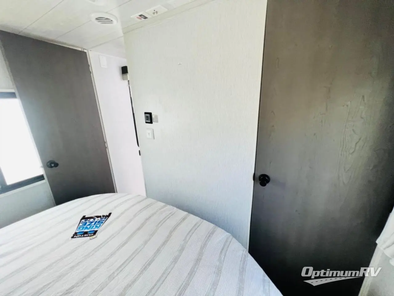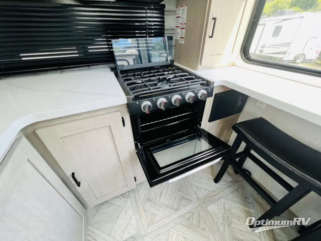 Your family of four or will enjoy this Wildwood View bunk model featuring 105 square feet of window space for unbelievable views of your surroundings. The Versa Slide features a refrigerator, pantry, and entertainment center with a door leading to a bunk space including a 30" x 70" flip-up bunk with a mattress pad below, storage cubbies for your things, and a desk with bar stool for any office work that you may need to do while you travel. All is neatly tucked away within the slide behind an entertainment wall with fireplace opposite the sectional sofa which is great for relaxing and entertaining family and friends indoors. The rear kitchen area offers 18 linear feet of countertop space with four bar stools, plus a three burner range and double sink. Your refrigerator and pantry will hold all of your perishables and dry goods, and those are nearby within the Versa slide. Up front, a private bedroom with Versa-Tilt custom king bed which provides 14-1/2" of additional walking around space, plus you will find a wardrobe that has been prepped for a washer and dryer if you choose to add, as well as dual nightstands beneath wardrobes on either side of the bed. A large pass-through storage compartment offers plenty of storage for your outdoor gear, and if you enjoy outdoor cooking, you might want to add the outside kitchen option as well.