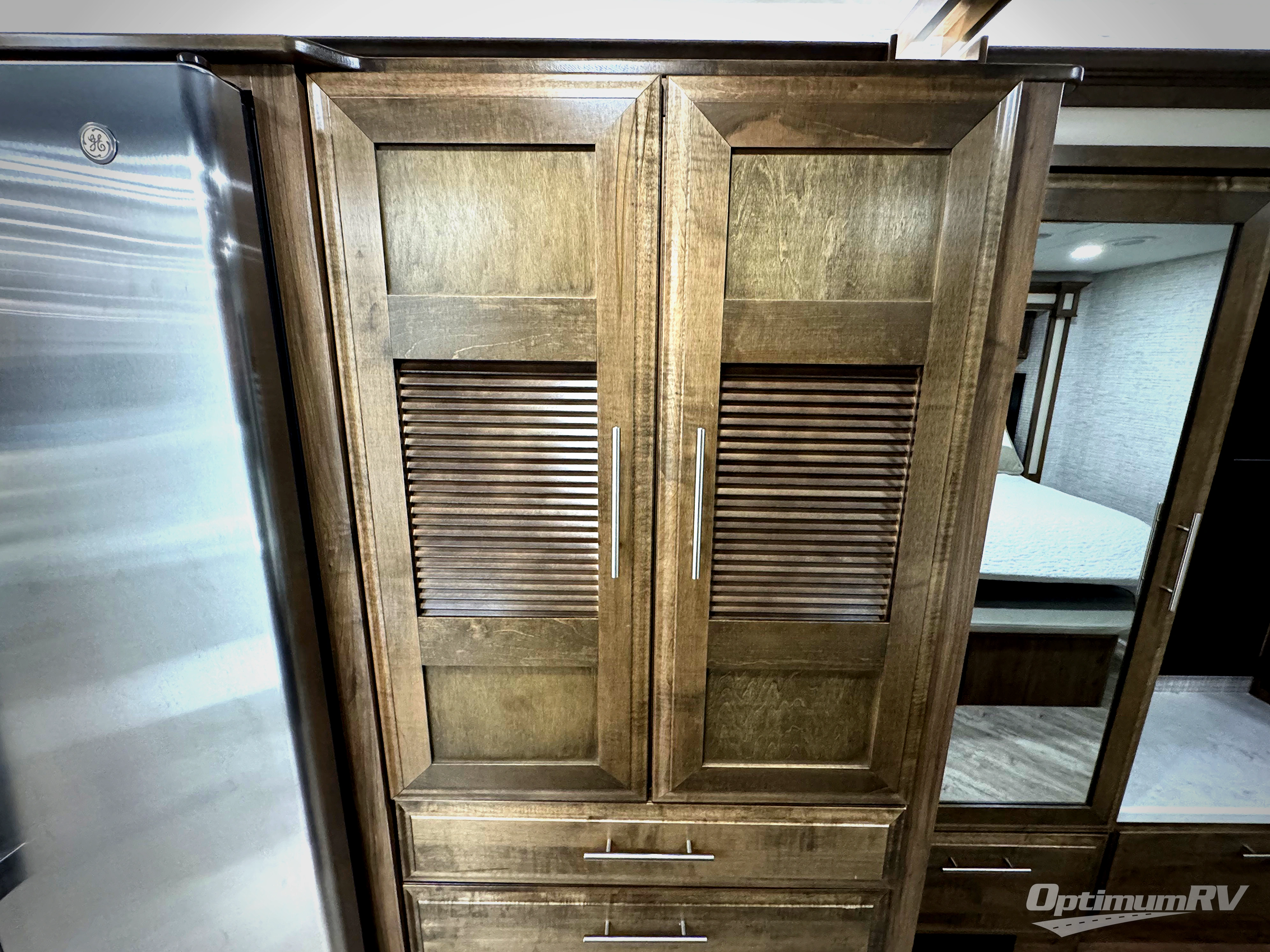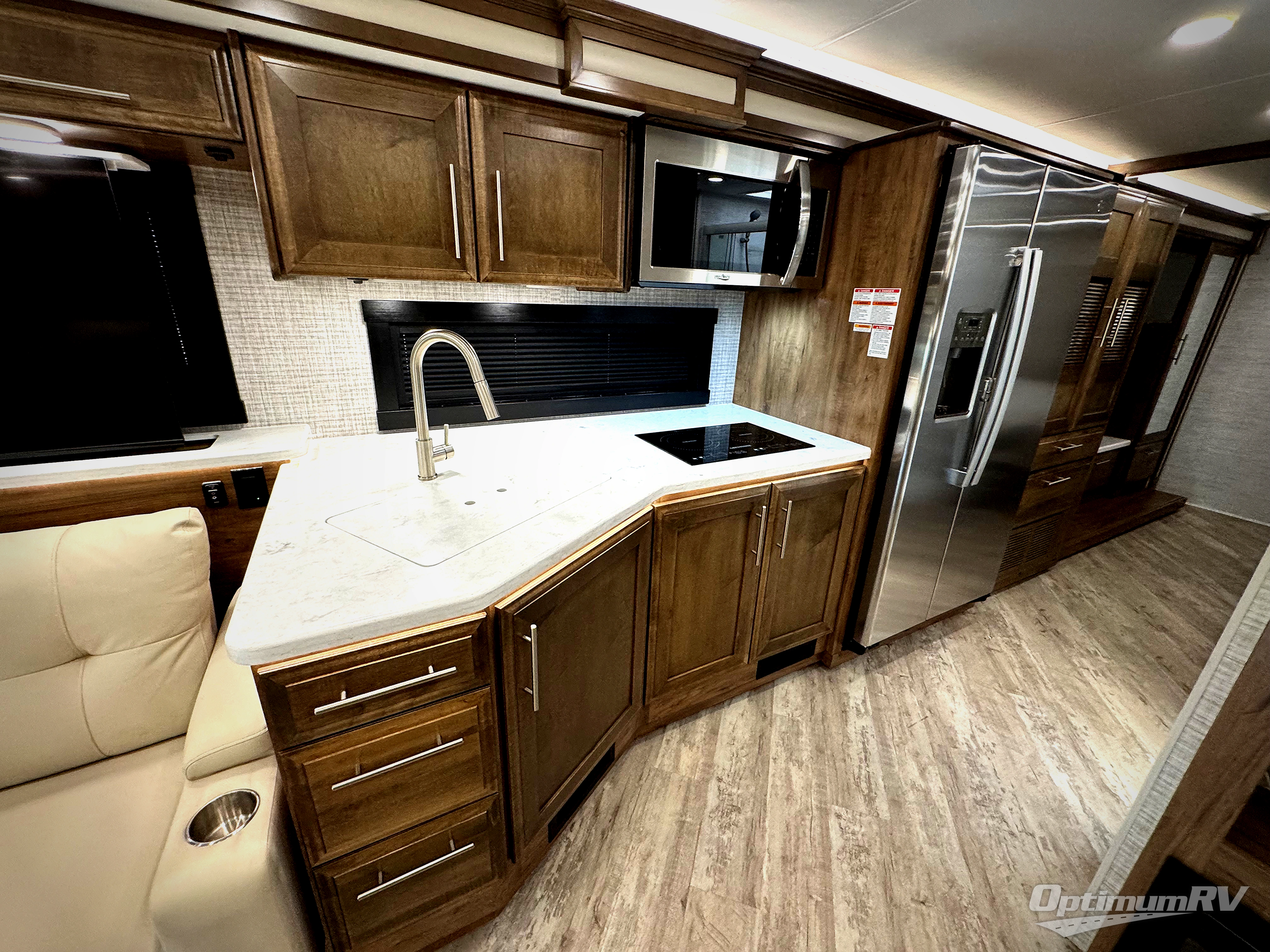 If you liked the Accolade model 37L, but don't need the extra sleeping space from the bunks, this 37M Accolade coach is perfect for you! You'll still have the cab-over bunk, the full-wall slide, and the rear private bedroom. The power head lift king bed will allow you to sit up and read at night, or you may just want to watch a movie on the bedroom LED TV. The chef of your group can prepare meals on the two burner induction cooktop, or use the residential-size convection microwave, and there is a residential refrigerator just like at home. Relaxing each day will be a breeze with the power theater seating across from the 50" TV lift and second sofa, and you can dine at the booth dinette. There is also a hutch for added storage space, and an impressive 23' power awning with LED lights!